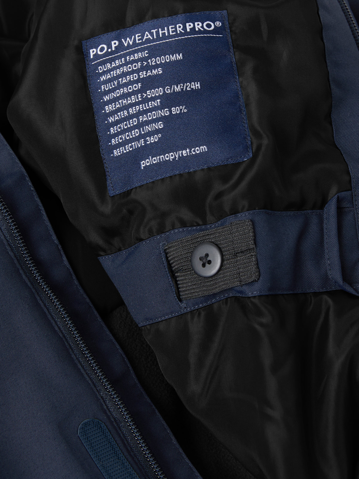 Ulkovaatteet, joissa on merkintä PO.P WeatherPRO®, täyttävät kaikki vaatimuksemme teknisille ulkovaatteille, olipa kyse sitten kestävyydestä, vedenpitävyydestä, hengittävyydestä tai lapsiturvallisuudesta.