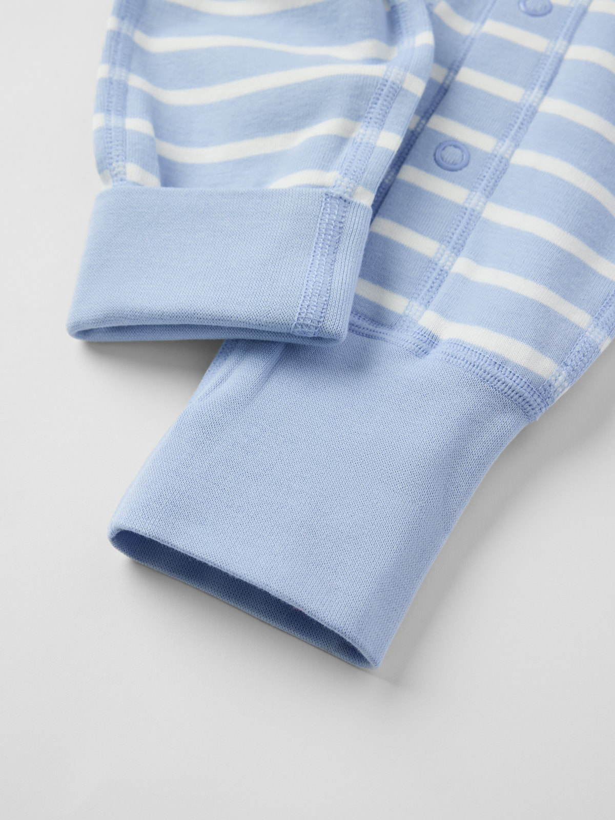 Klassinen raidallinen haalarimme pehmeää luomupuuvillaa – täydellinen sekä pyjamana että oloasuna! Haalarissa on erittäin pehmeät, litteät saumat, jotka eivät hankaa herkkää ihoa. Hihan- ja lahkeensuissa erityispitkät resorit, jotka voi taittaa auki lapsen kasvaessa. Pitkä nappilista pääntieltä lahkeensuulle helpottaa pukemista.