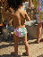 Uimavaippa kierrätettyä materiaalia – täydellinen vauvauintiin tai uimaretkelle! Uimavaippa on kuvioitu kokonaan Tove Janssonin muumitarinoiden hahmoilla. Lisävuoraus estää pienten vahinkojen pääsyn housujen ulkopuolelle. Lahkeensuissa säädettävä resori. Joustavaa vyötäröä voi säätää sisäpuolelta kiristysnauhalla.