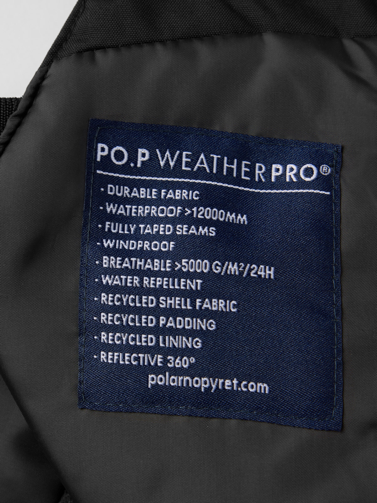 Ulkovaatteet, joissa on merkintä PO.P WeatherPro®, täyttävät kaikki vaatimuksemme teknisille ulkovaatteille, olipa kyse sitten kestävyydestä, vedenpitävyydestä, hengittävyydestä tai lapsiturvallisuudesta.