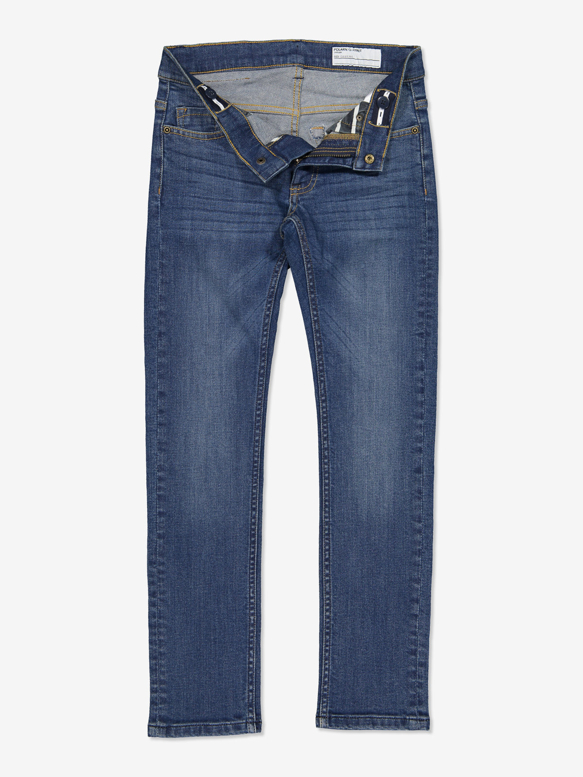 Farkut pehmeää stretchmateriaalia. Kapeampi 5-taskumalli vaalennuksilla. Vyölenkit vyötäröllä, joka on säädettävissä sisäpuolelta reikäkuminauhalla. Edessä neppari ja vetoketju.