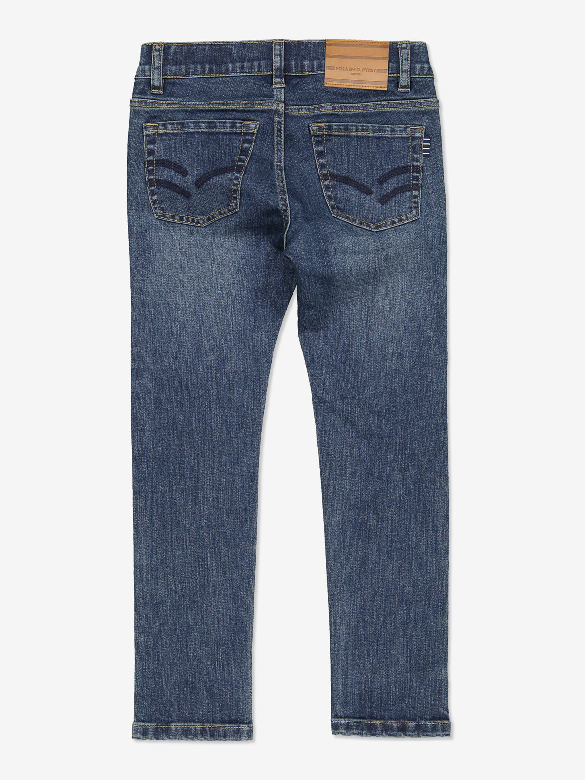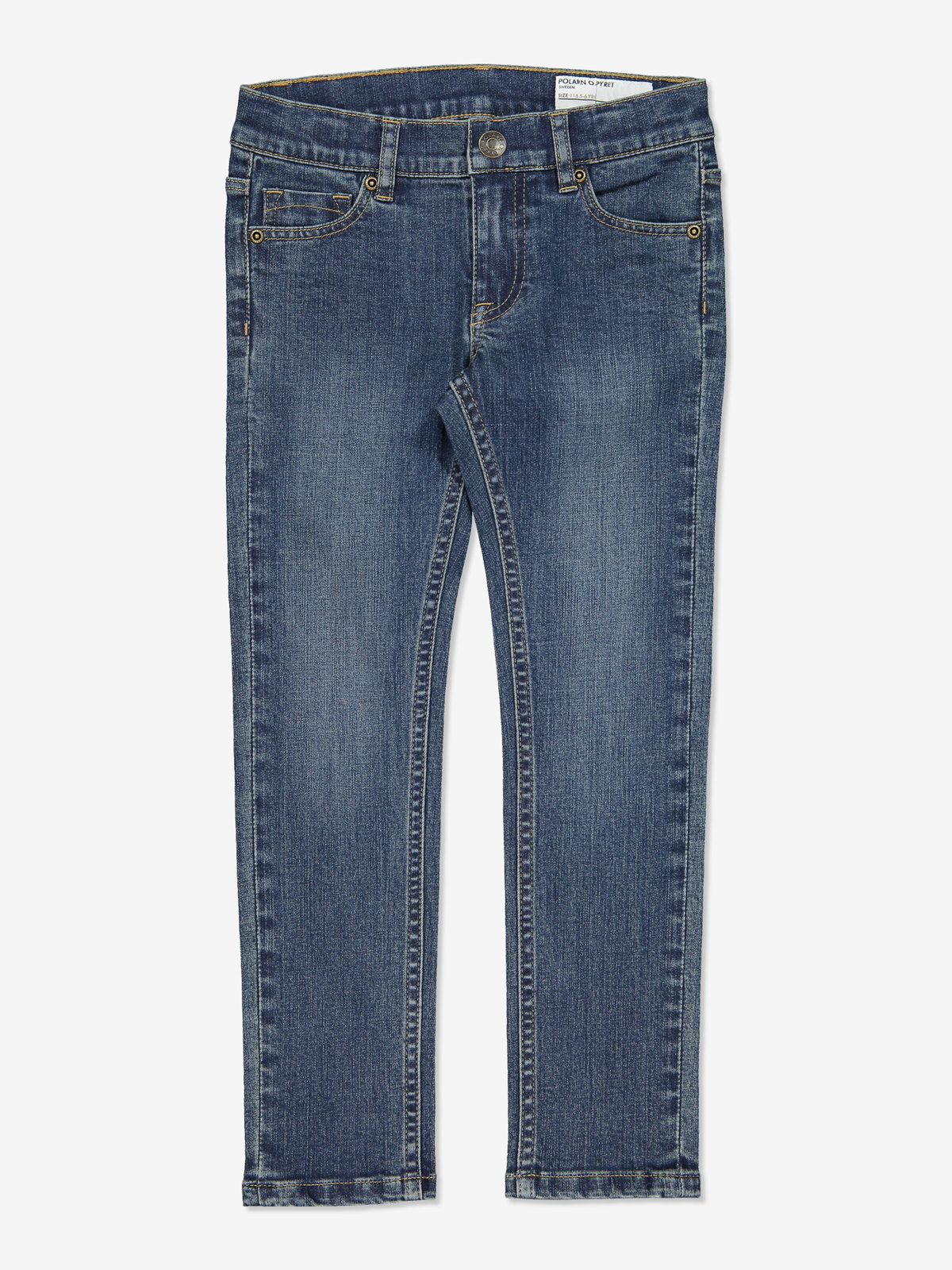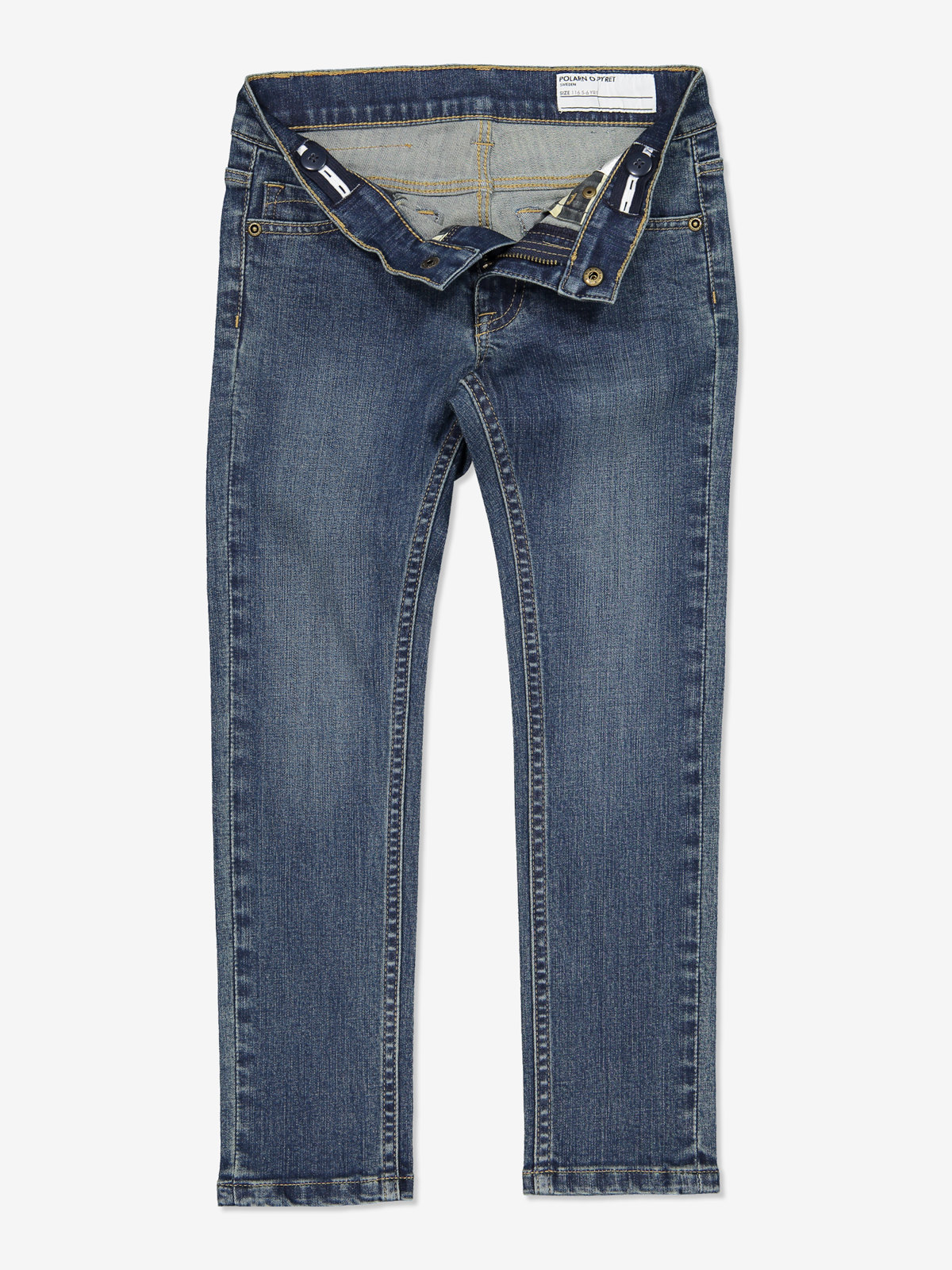 Erittäin pehmeät stretch-farkut hillityllä pesuefektillä, 5-taskumalli. Edessä neppari ja vetoketju. Vyölenkit vyötäröllä, joka on säädettävissä sisäpuolelta reikäkuminauhalla.