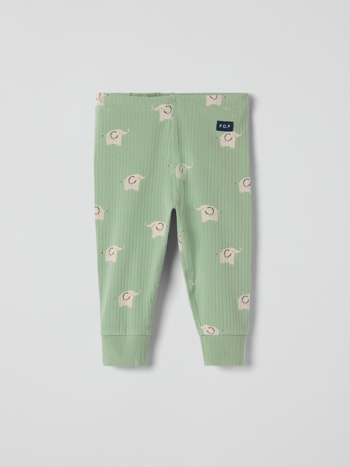 Ribbineuletut housut pehmeästä luomupuuvillasta vauvalle. Housuissa on erityisen pehmeät, litteät saumat, jotka eivät hankaa herkkää ihoa, sekä pehmeät resorit lahkeissa ja säädettävä vyötärö nappikuminauhalla.