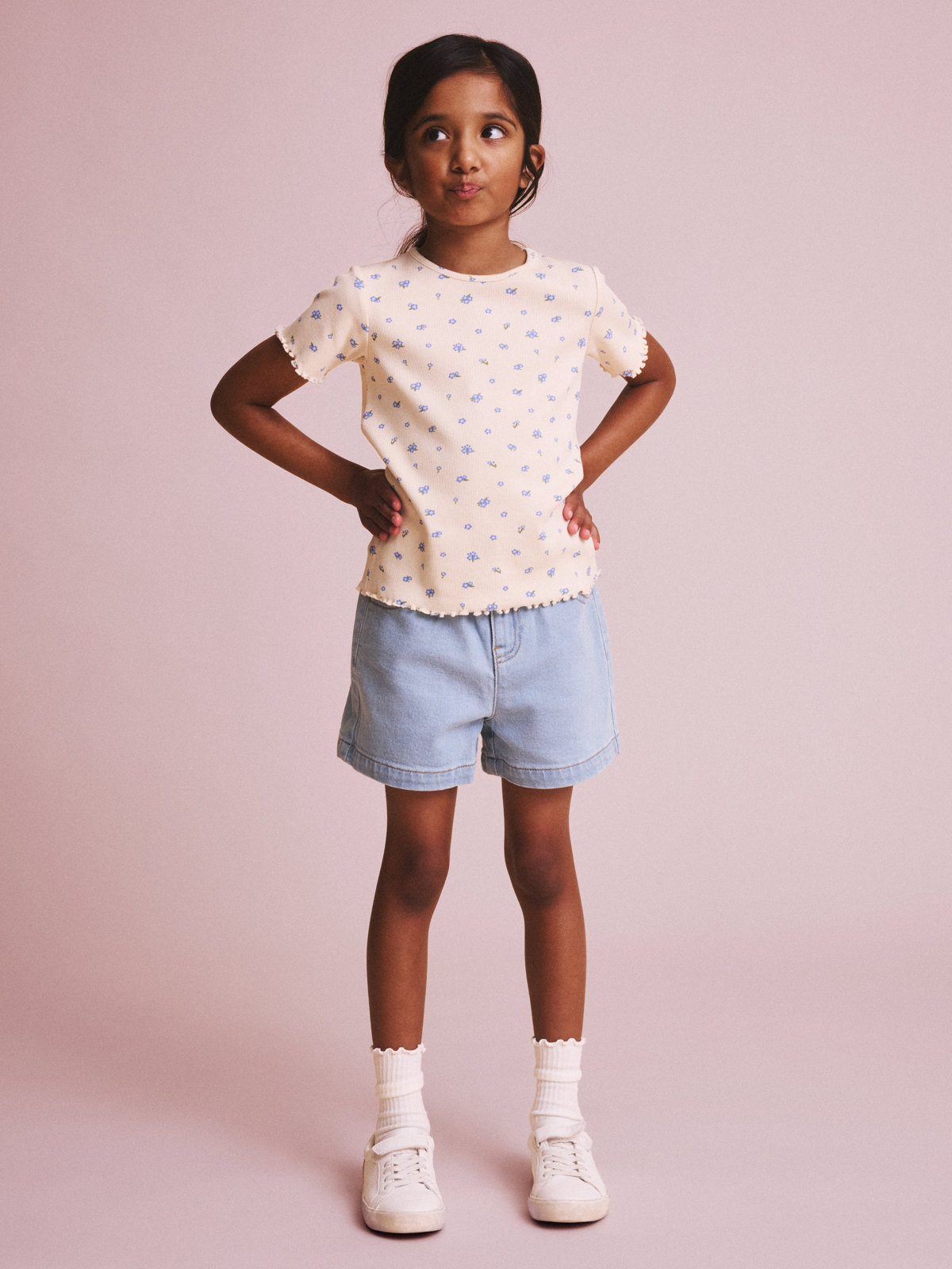 Pehmeät ja joustavat farkkushortsit luomupuuvilladenimistä – kesän ehdoton suosikki jokaisen lapsen vaatekaappiin! Shortseissa on mukava istuvuus ja vyötärö, jota voi säätää nappikuminauhalla. Keväästä 2022 alkaen kaikki farkkumme on valmistettu GOTS-sertifioidusta puuvillasta!
