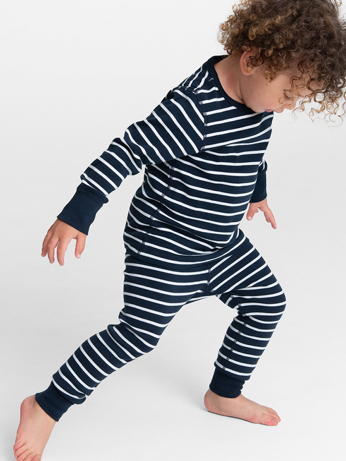 Vauvan raidalliset housut 100 % luomupuuvillaa. Housuissa on klassinen raitakuosimme sekä joustava vyötärö, jota voi säätää kiristysnauhalla. Pehmeät resorit lahkeensuissa.