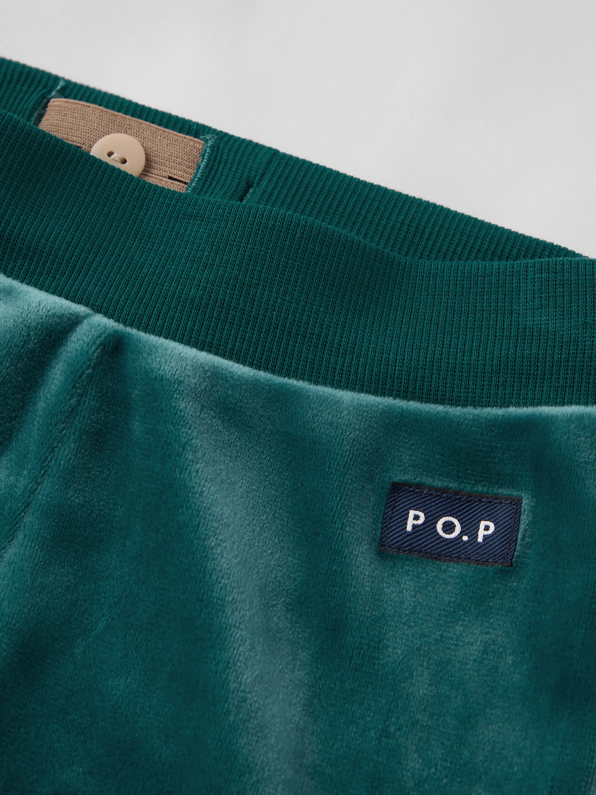 Pehmeät ja mukavat veluurihousut, valmistettu kierrätetystä polyesteristä. Täydelliset kasvaville pienille jaloille. Joustava resori vyötäröllä, jota voi säätää reikäkuminauhalla. Erityispitkät resorit lahkeensuissa voi taittaa ylös tai alas lapsen kasvaessa.