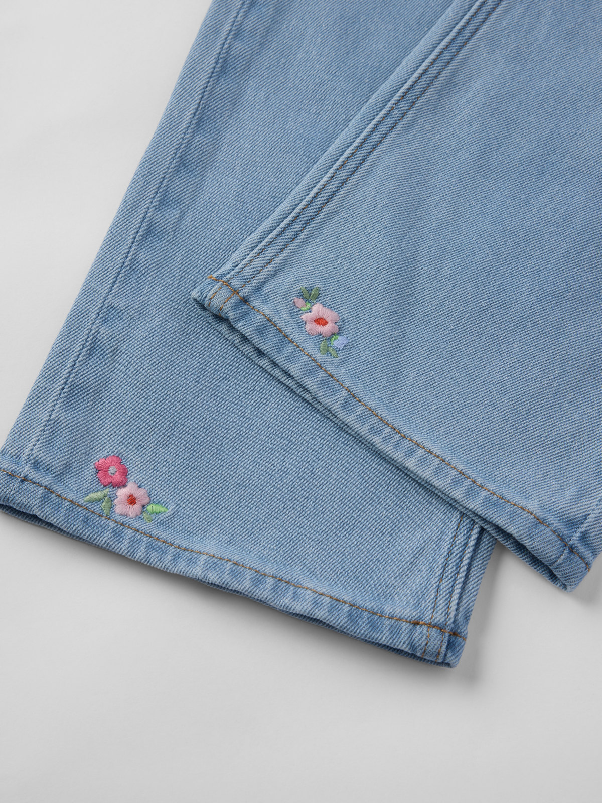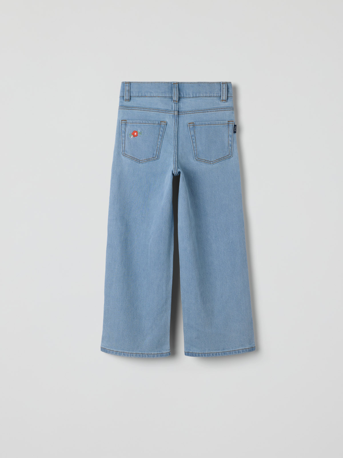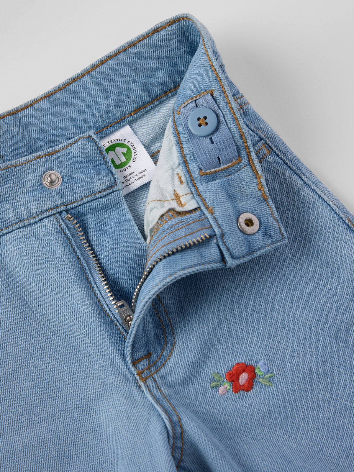Tyylikkäät SALLY-farkut pehmeää farkkukangasta suloisilla brodeerauksilla. Leikkeihin sopivat housut pehmeää denim-materiaalia. Leveät lahkeet ja korkea vyötärö. Kaikki farkkumme on valmistettu GOTS-sertifioidusta puuvillasta keväästä 2022 lähtien.
