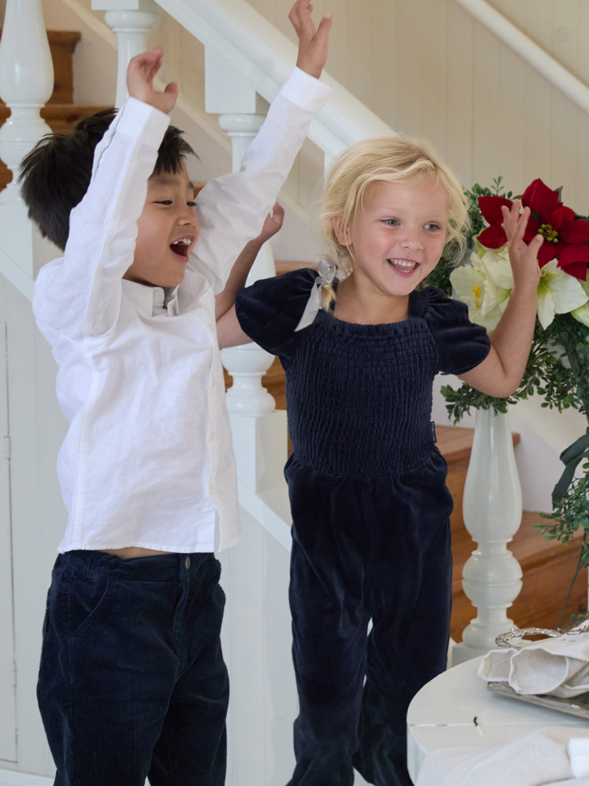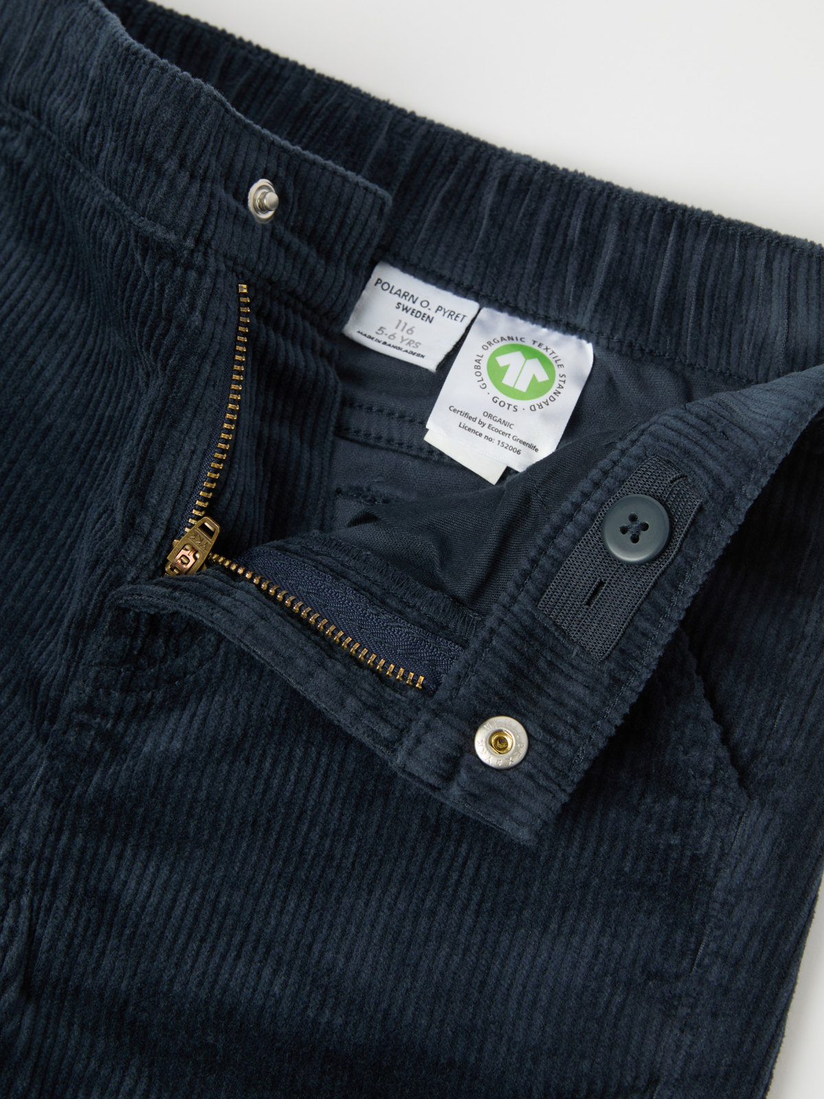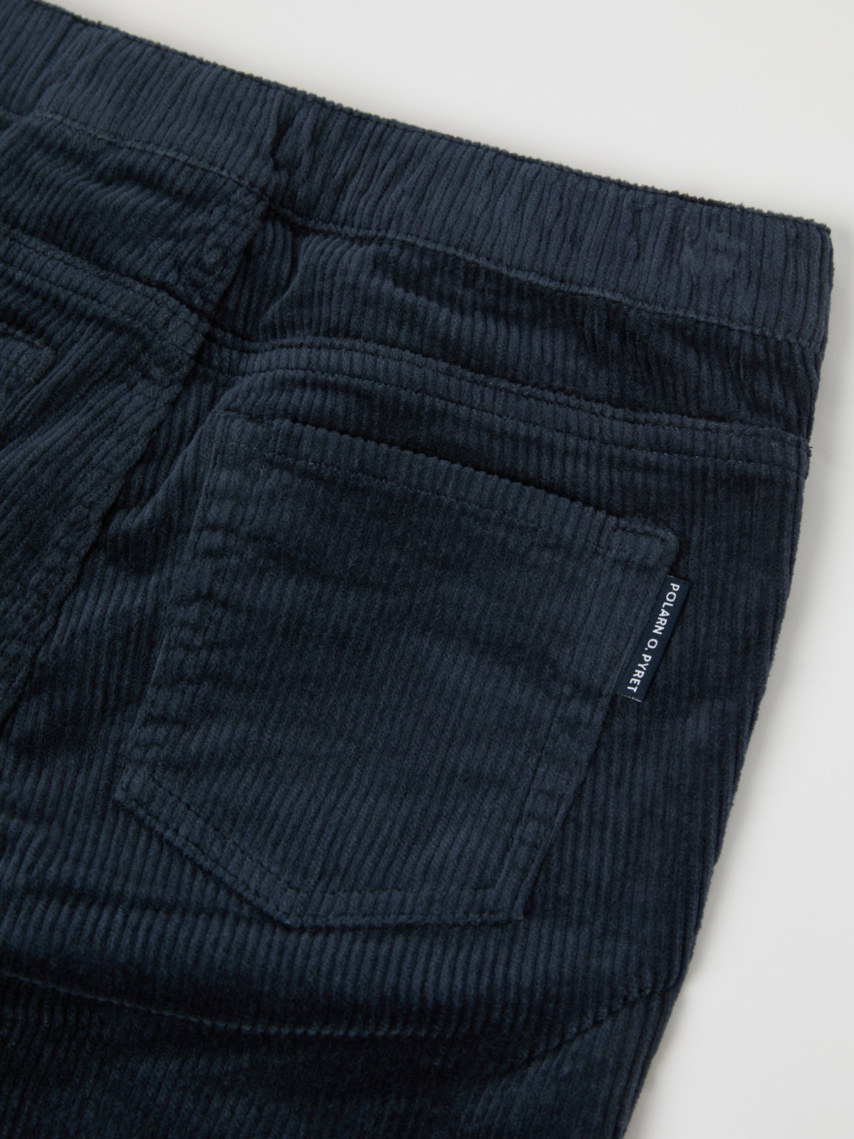 Vakosamettihousut luomupuuvillaa, 5-taskumalli. Leikkeihin sopivat housut pehmeää stretchmateriaalia. Kapeat lahkeet ja säädettävä vyötärö, jossa reikäkuminauha.