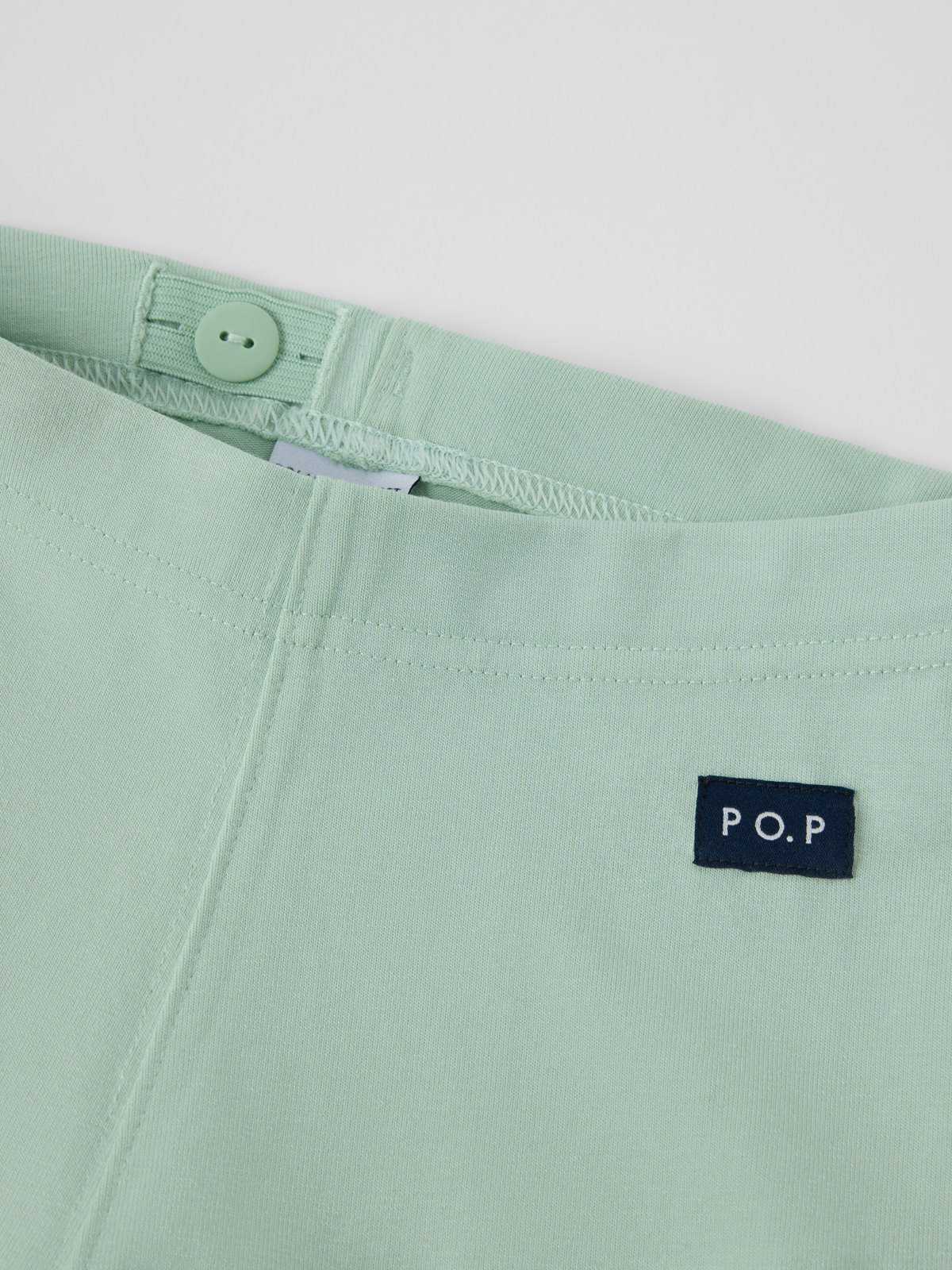 Yksiväriset pyöräilyshortsit pehmeää luomupuuvillaa – täydelliset kesäshortsit! Vyötärö on joustava ja sitä voi säätää sisäpuolelta napillisen kuminauhan avulla. Shortseja on useissa väreissä ja ne sopivat hyvin yhteen koko malliston kanssa.