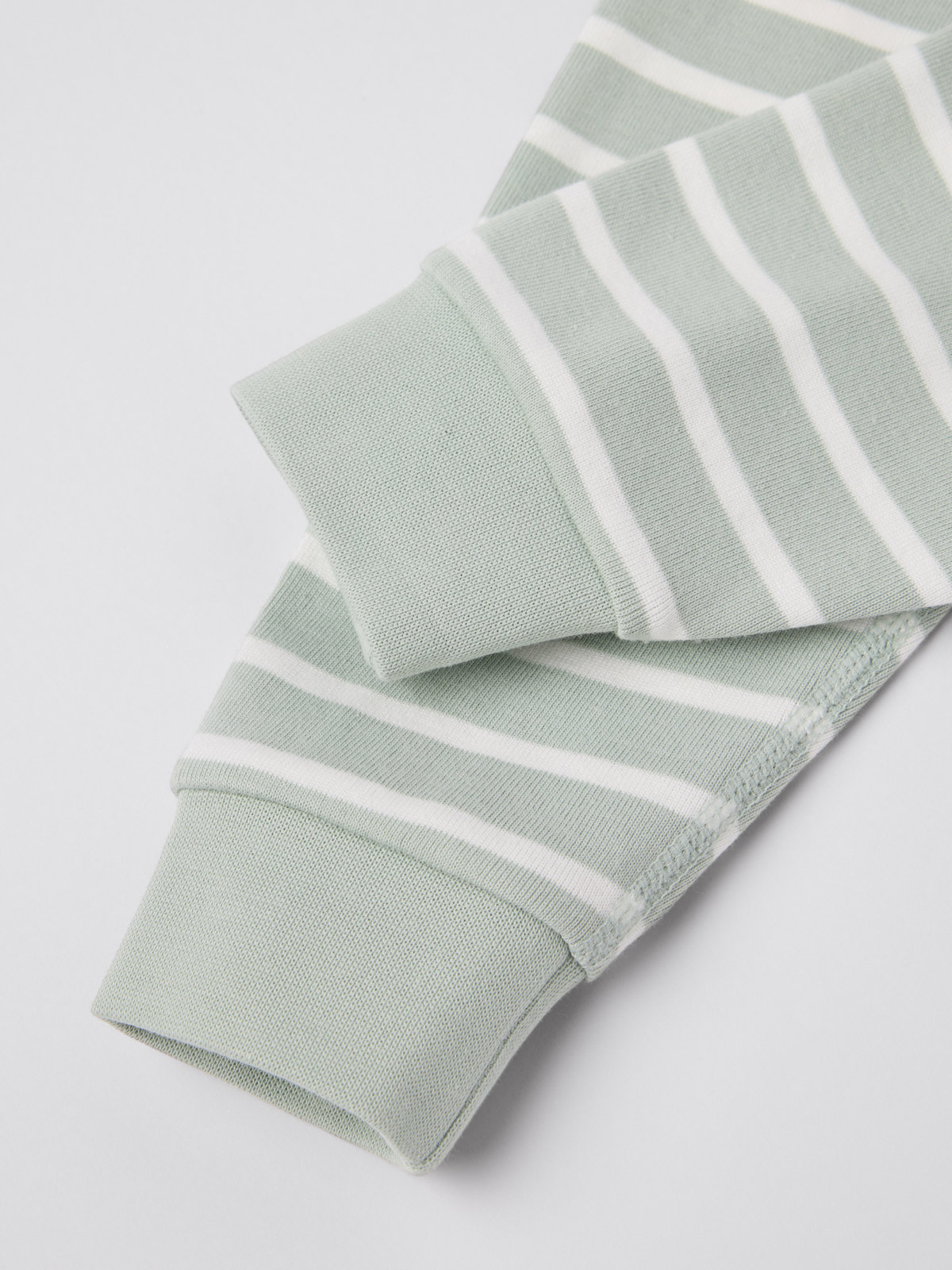 Trikoohousut pehmeää luomupuuvillaa. Täydellinen perusvaate, joka sopii sekä kotiin että päiväkotiin! Housuissa on klassinen raitakuosimme. Joustava vyötärö, jota voi säätää sisäpuolelta reikäkuminauhalla. Pehmeä ribbiresori lahkeensuissa.