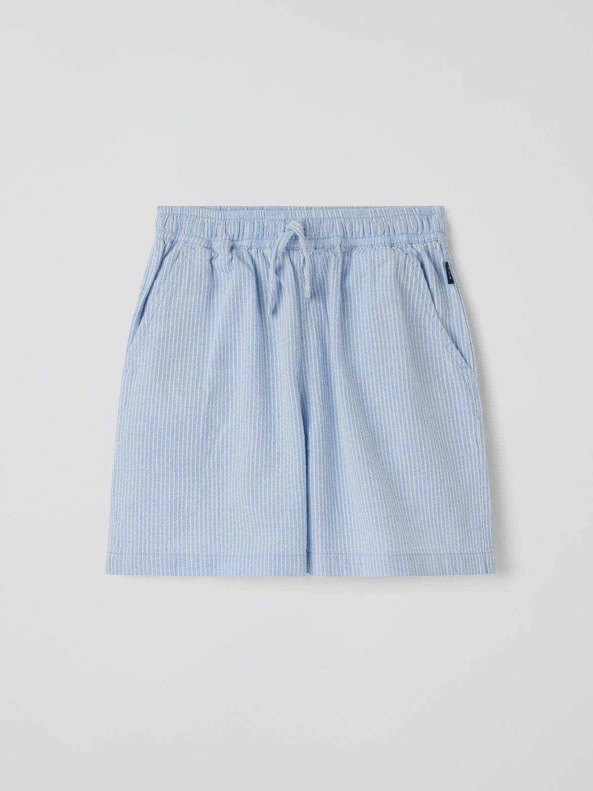 Raidalliset shortsit kudotusta luomupuuvillasta – täydellinen arjen vaate kesävaatekaappiin! Shortseissa on kaksi sivutaskua ja mukava joustava vyötärö, jonka voi säätää nyörillä.