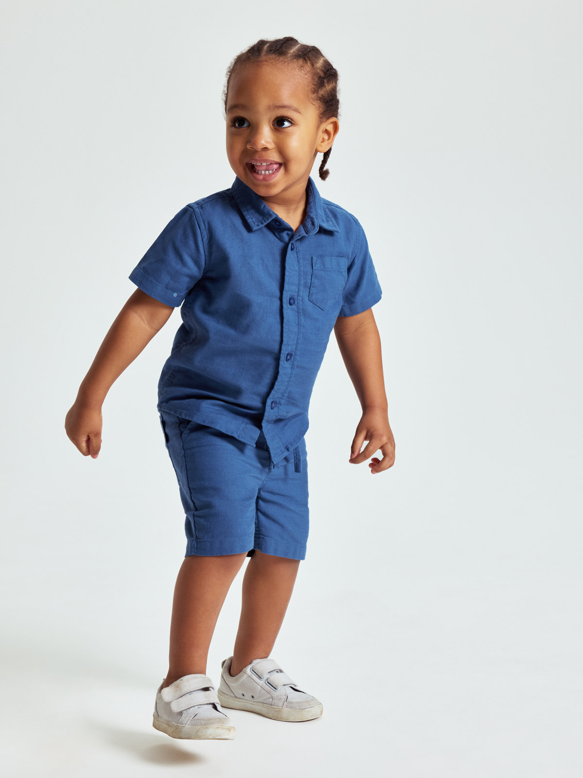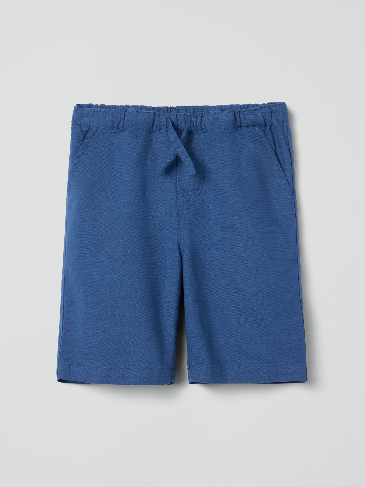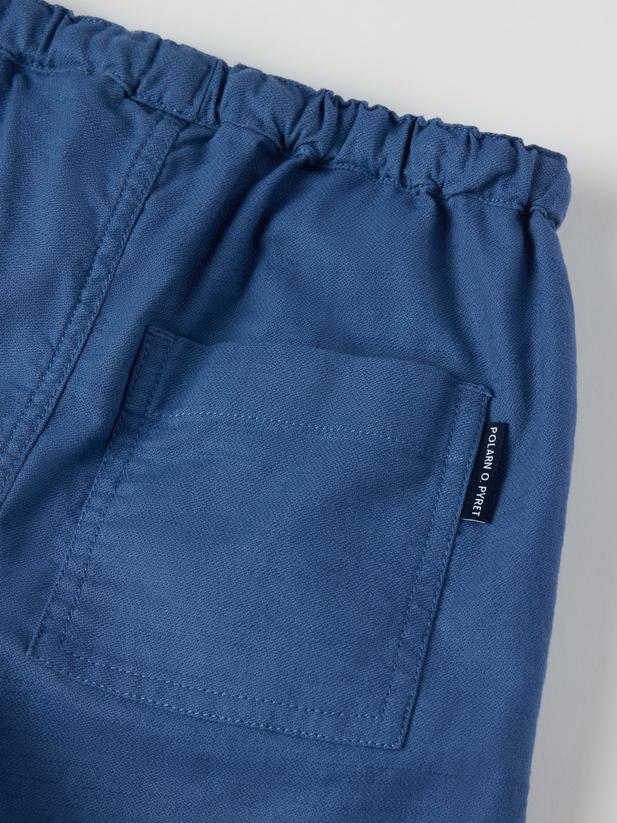 Yksiväriset shortsit ohutta, pellavalta tuntuvaa luomupuuvillaa – kauniit sekä arkeen että juhlaan. Joustava vyötärö, jota voi säätää kiristysnauhalla. Kaksi etutaskua.