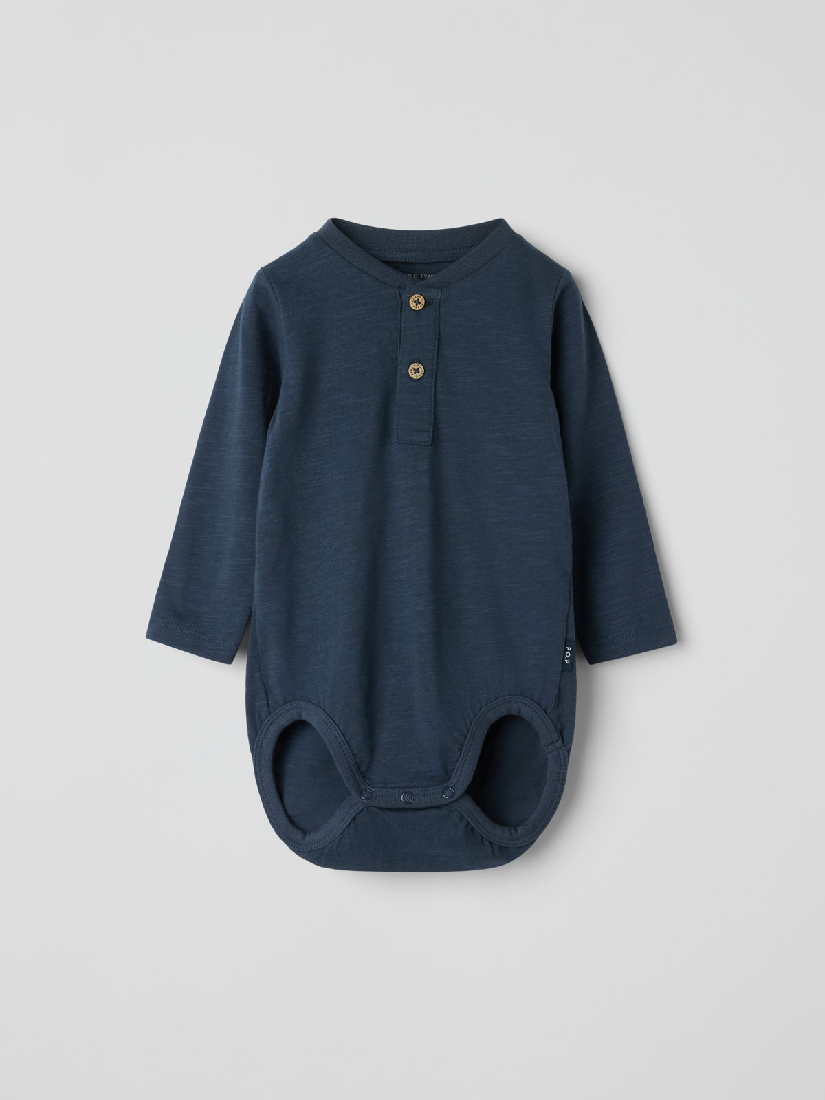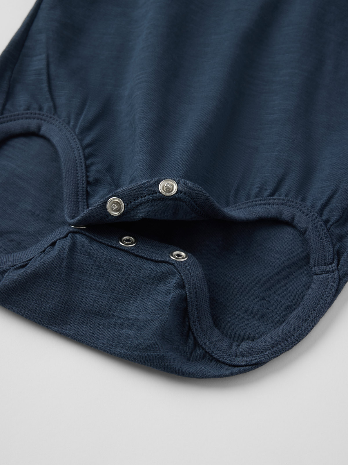 Body pehmeää slub-kangasta, 100 % luomupuuvillaa – kevyt ja mukava arjen suosikki! Body suljetaan lyhyellä nappilistalla edessä.