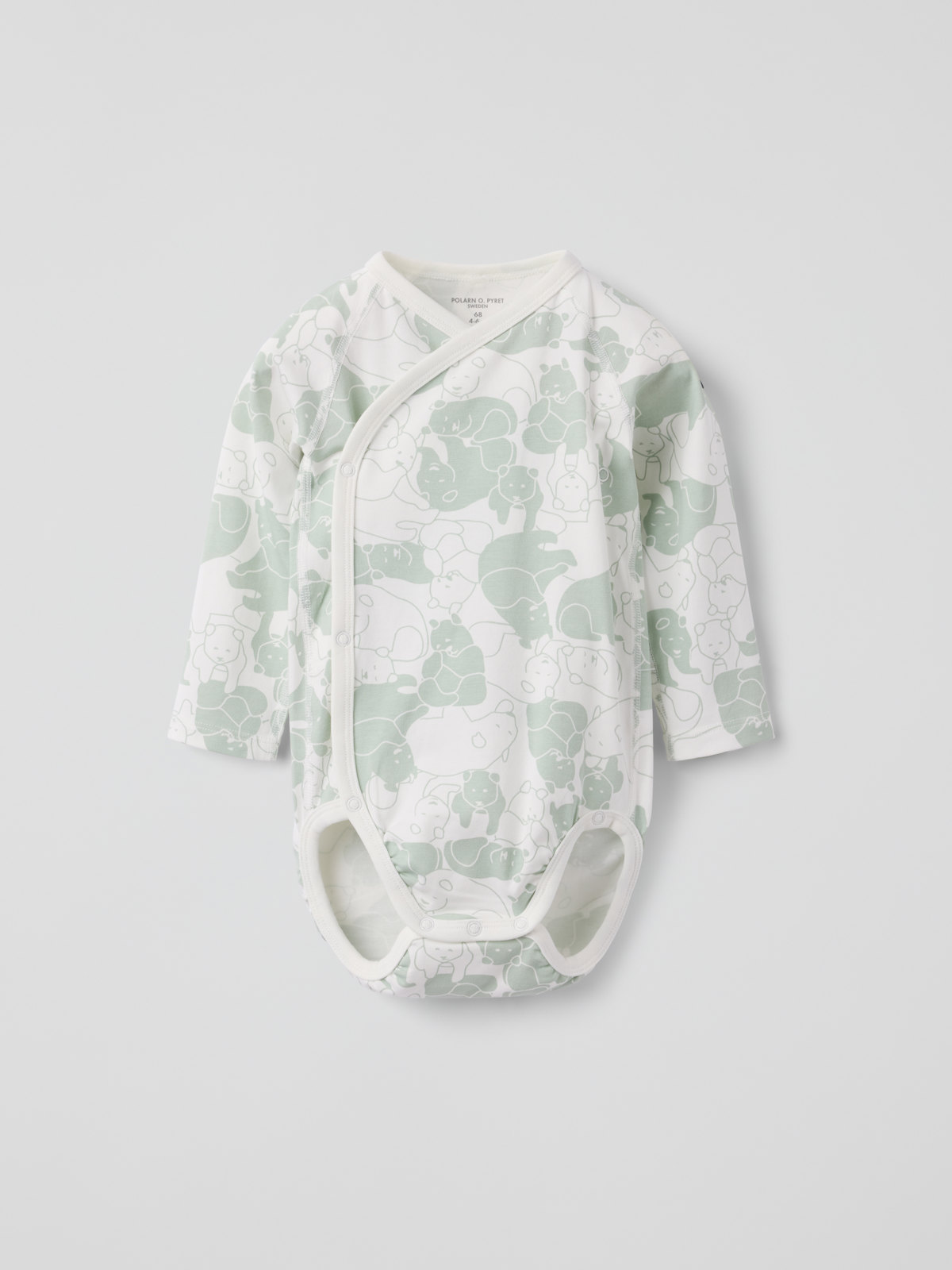 Kietaisubody vauvalle, 100 % luomupuuvillaa. Body on ommeltu erityisen pehmeillä saumoilla, jotka eivät hankaa herkkää ihoa. Nepparit kietaisuaukossa helpottavat pukemista.