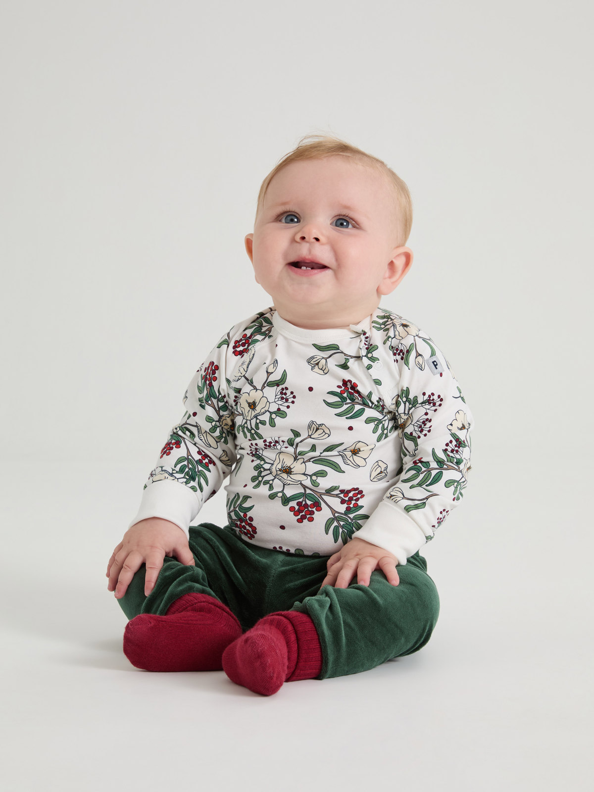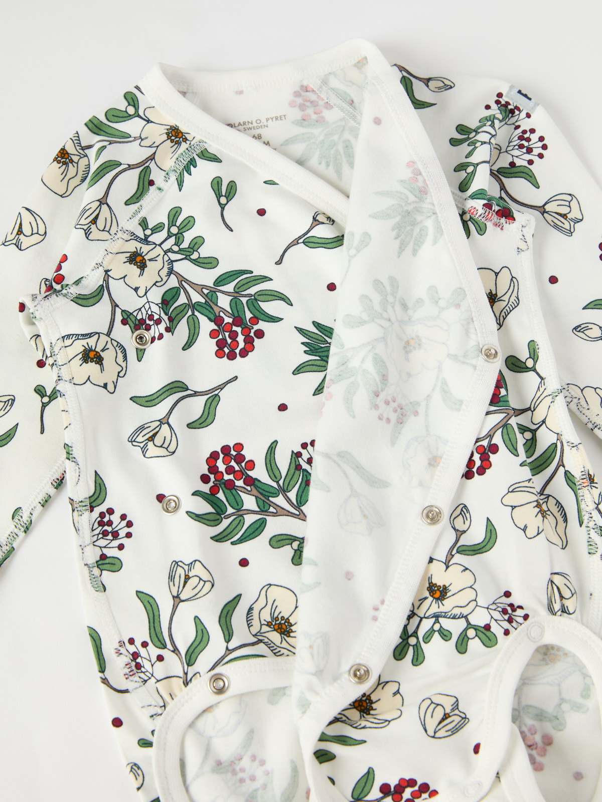 Pidennettävä body 100 % luomupuuvillaa. Lisärivi neppareita haarassa ja taitettavat resorit hihansuissa, joten body kasvaa lapsen mukana!