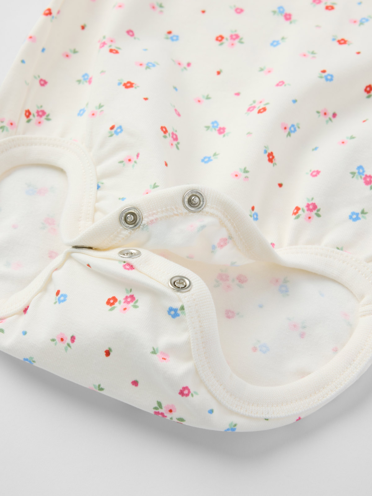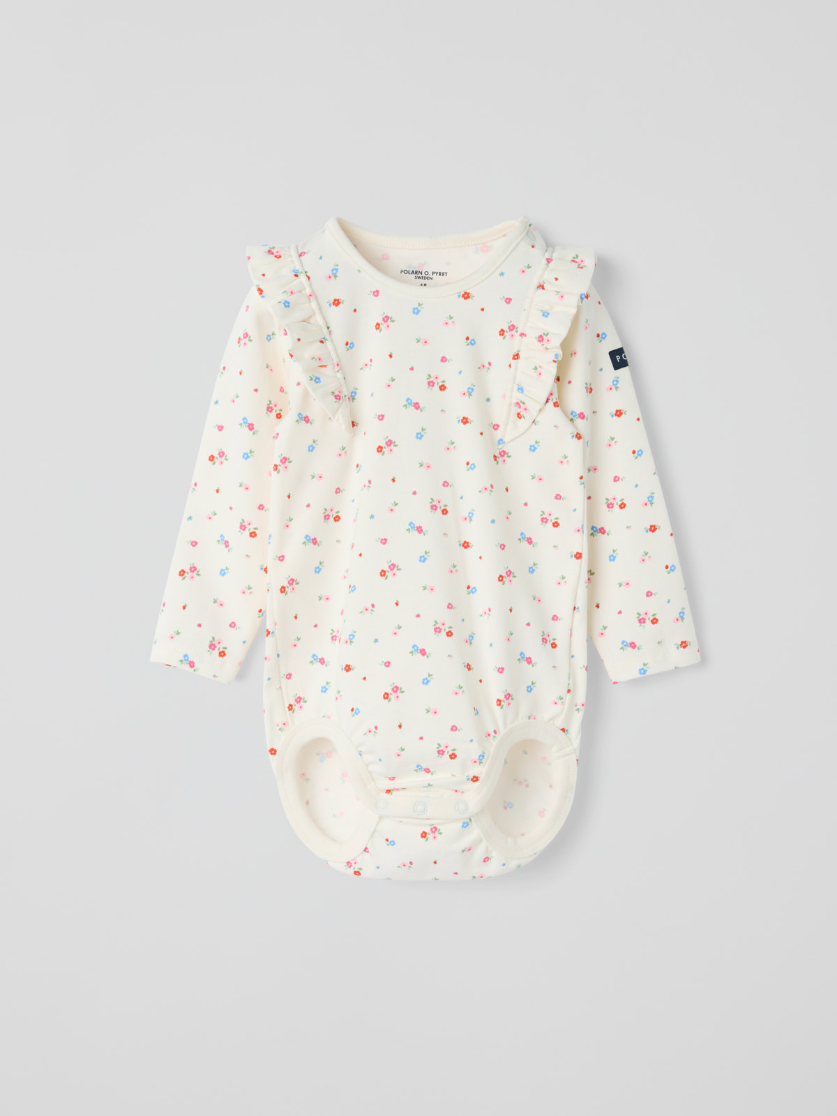Pehmeä body ekologista puuvillatrikoota, jossa suloiset röyhelöt. Erittäin pehmeät, litteät saumat hellivät herkkää ihoa.