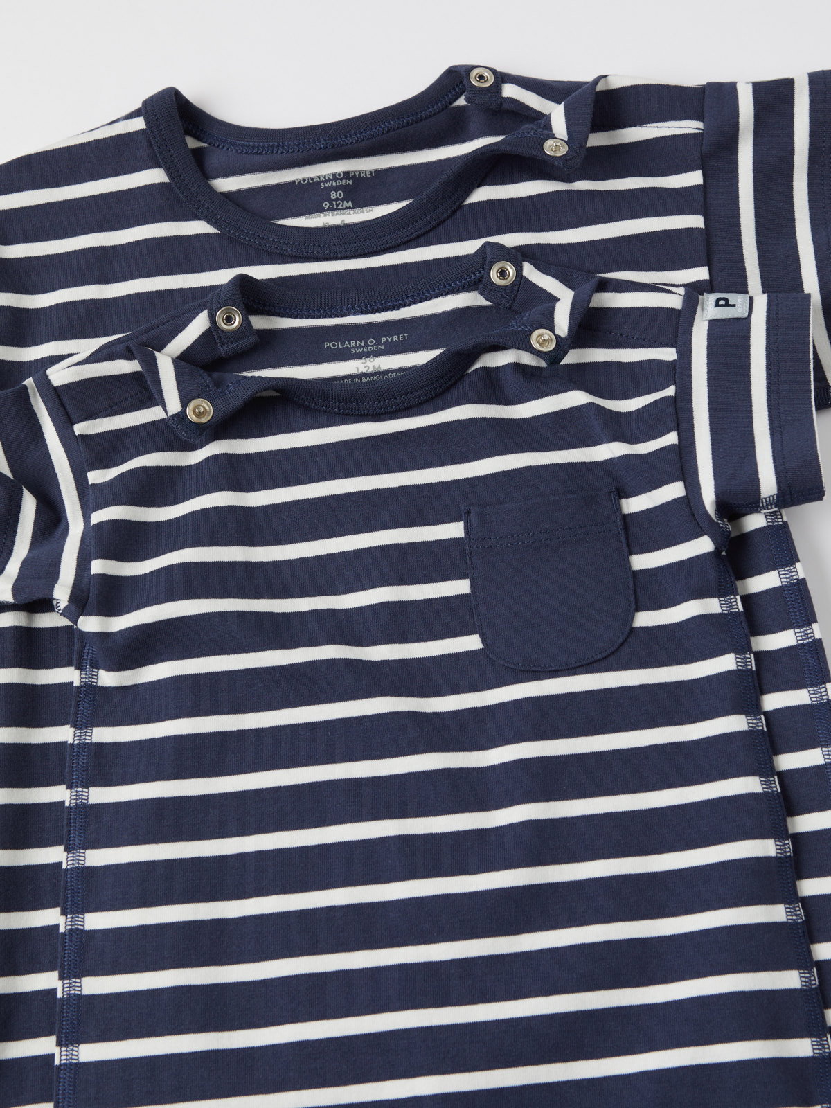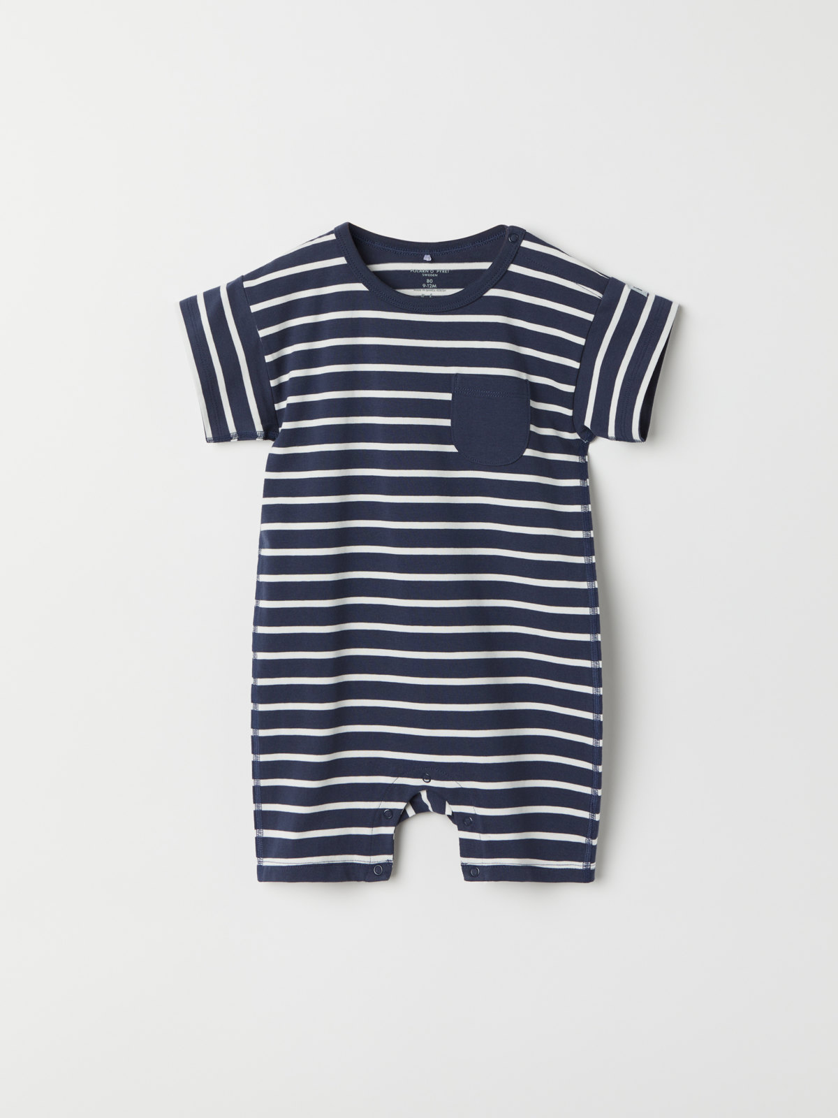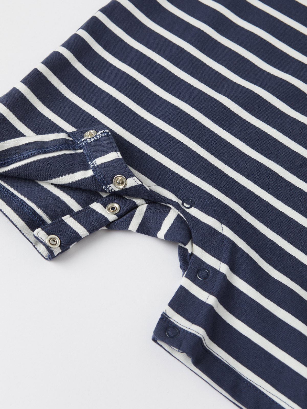 Vauvan raidallinen haalari pehmeää luomupuuvillaa – todellinen kesäsuosikki!