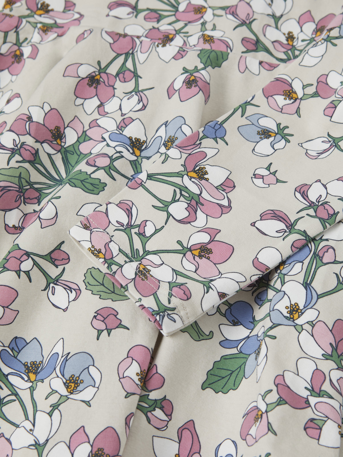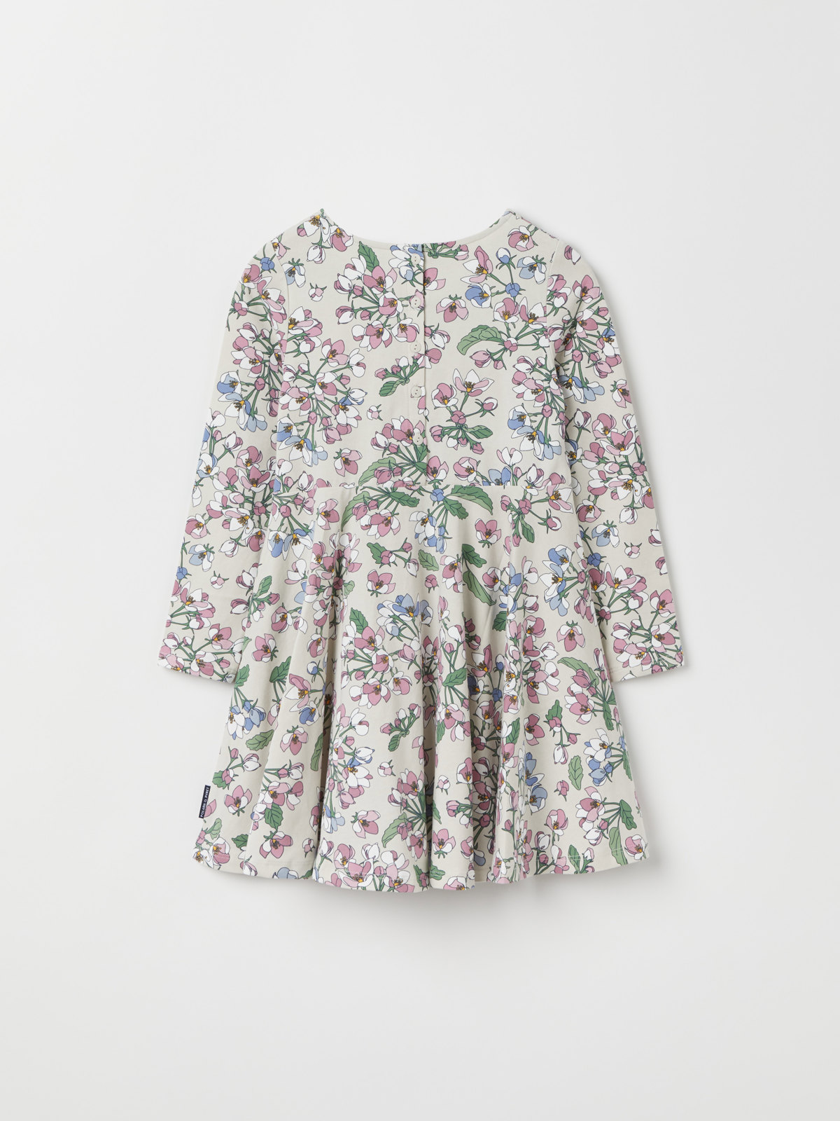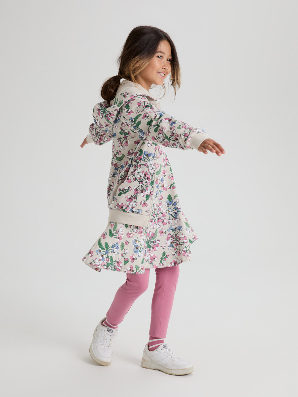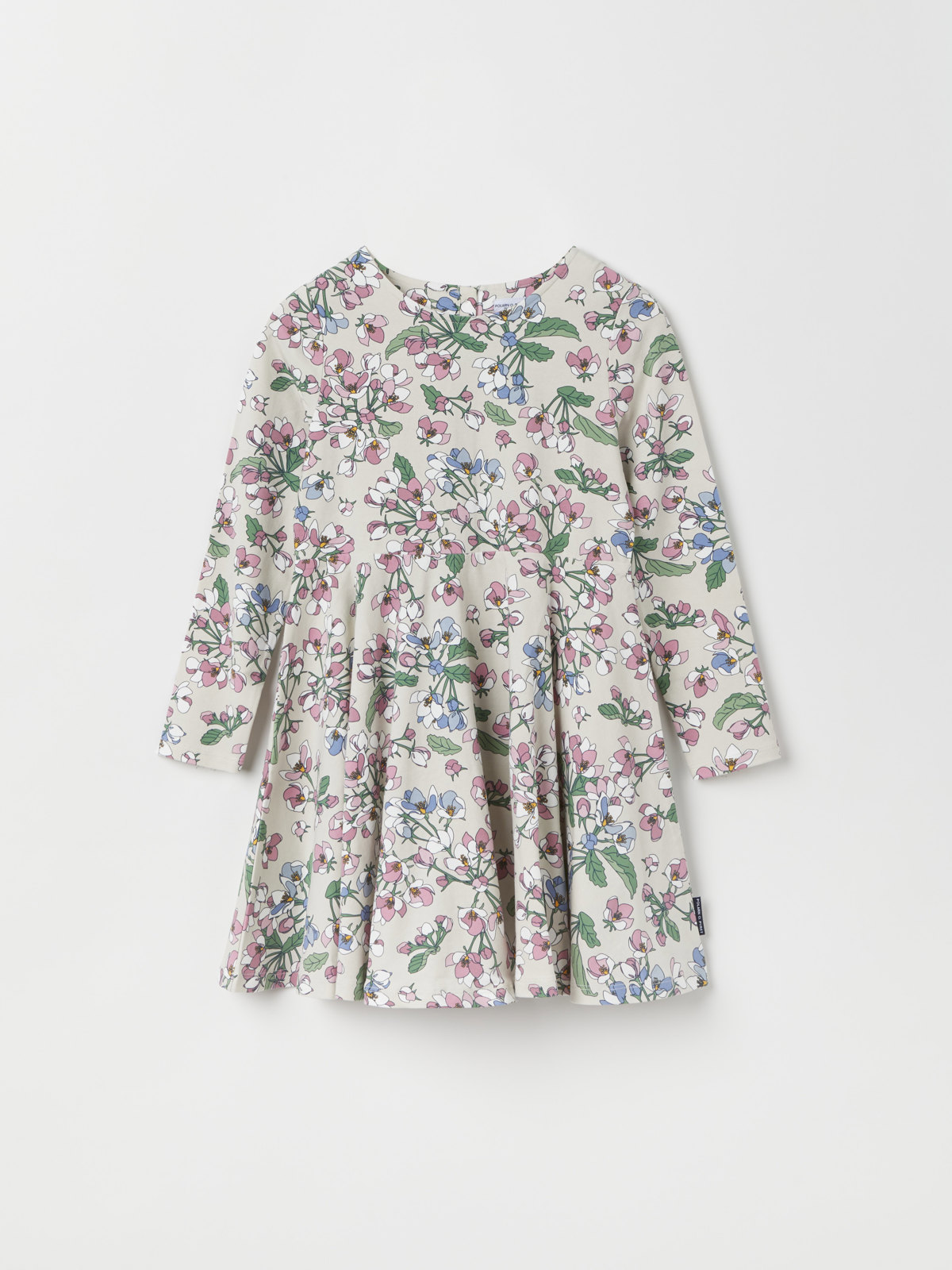 Tämä mekko on lapsen vaatekaapin suosikki! Valmistettu pehmeästä luomupuuvillatrikoosta. Erityisen leveä hameosa, joka näyttää hienolta pyöriessä.