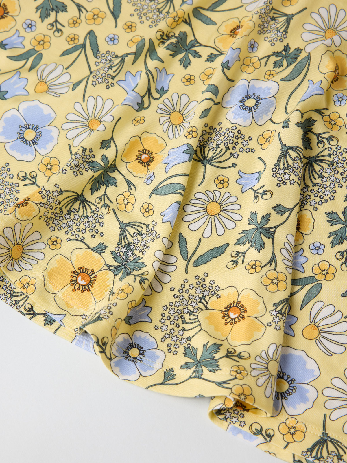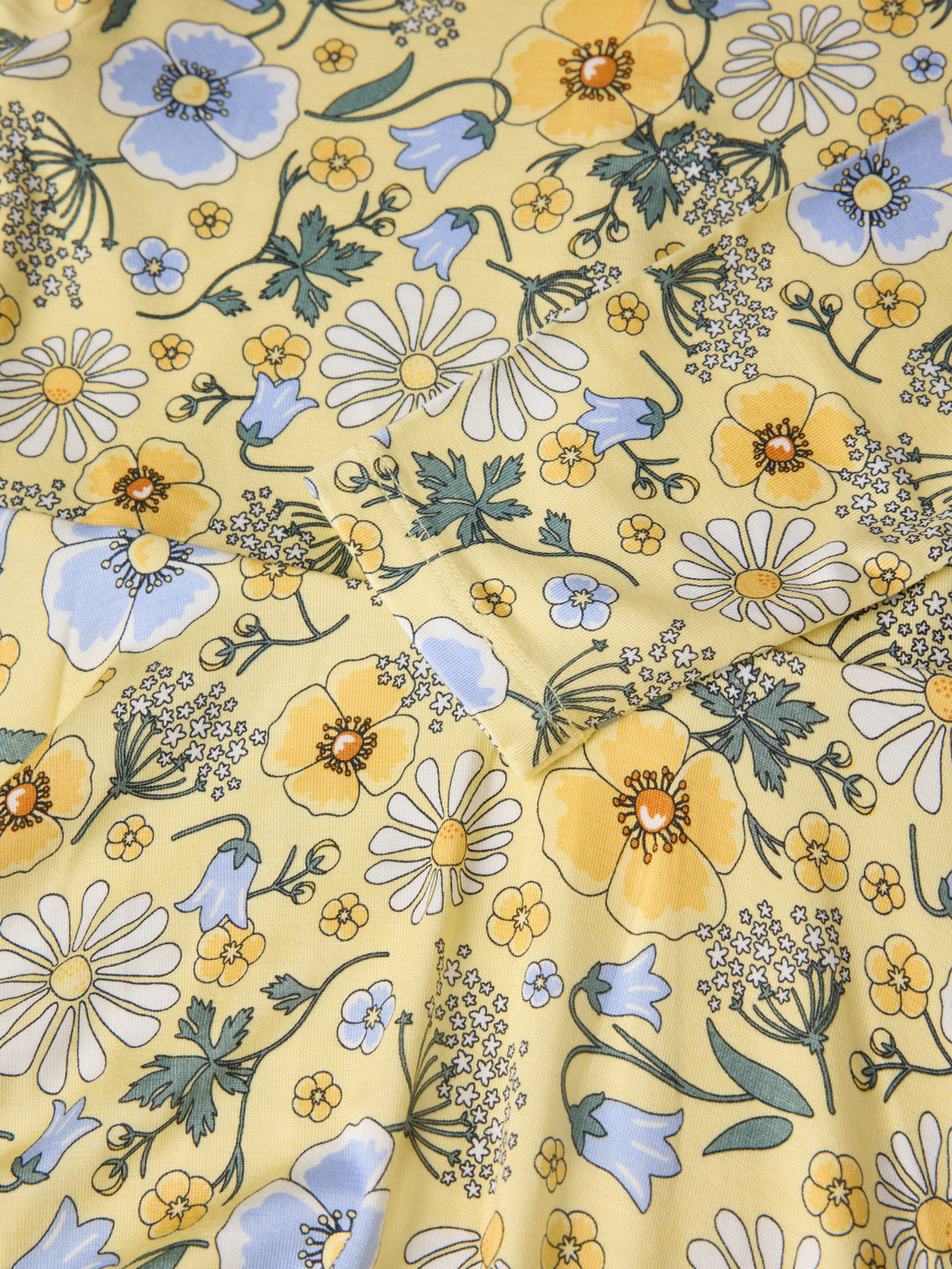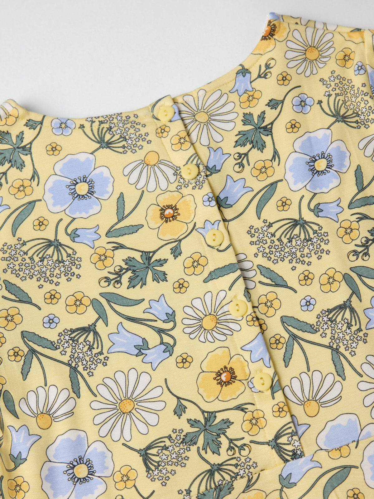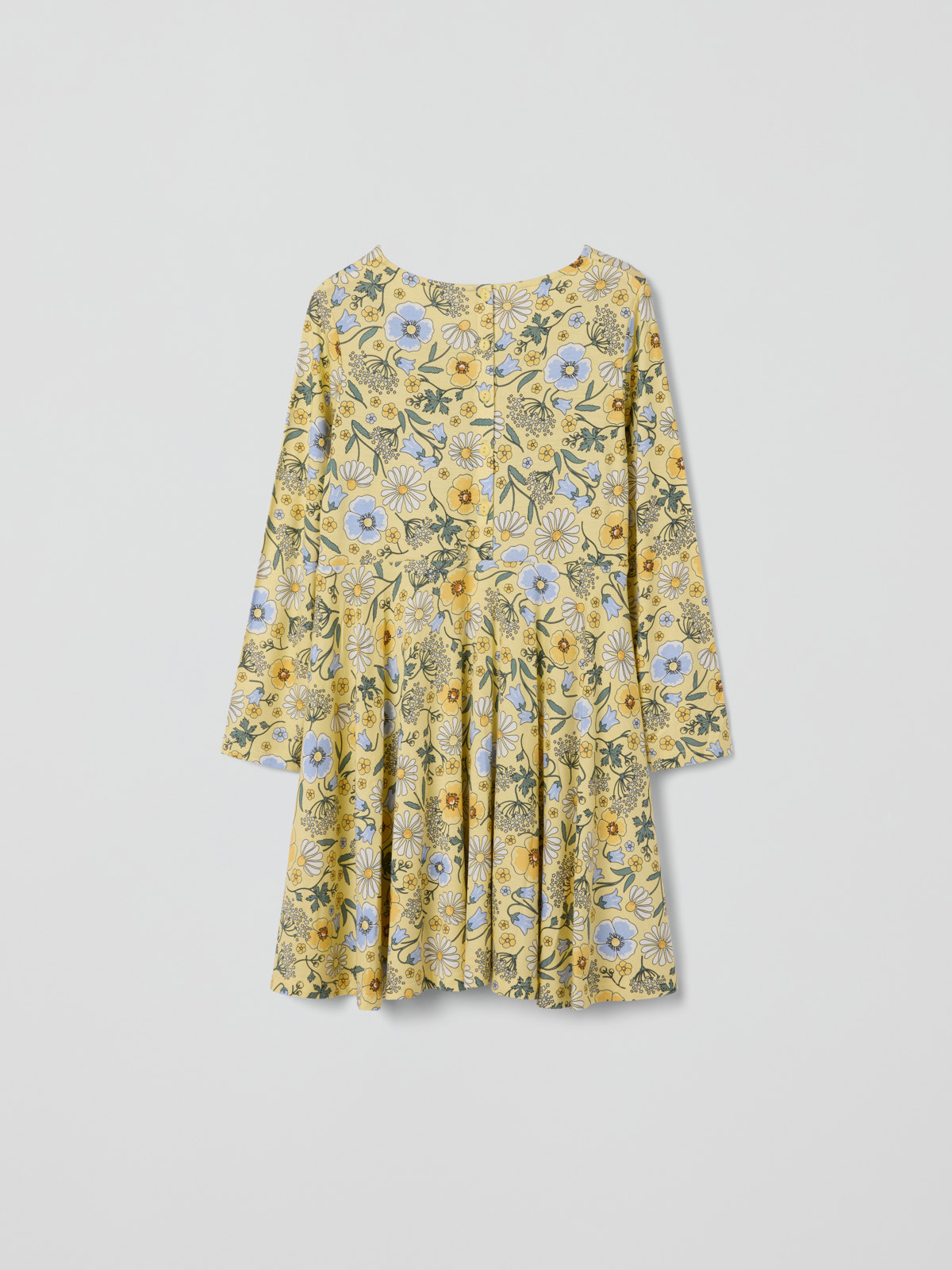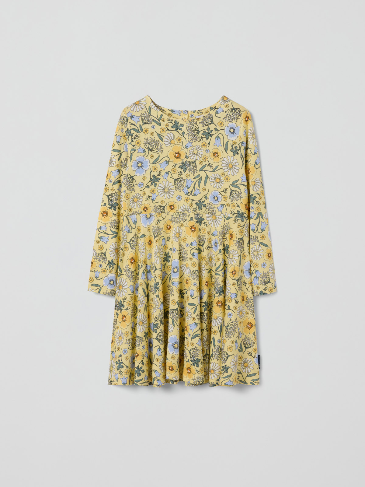 Klassinen kellomekko kesäksi. Ohutta ja vilpoisaa Ecovero™-viskoositrikoota – täydellinen lämpimiin päiviin! Mekossa on kukkakuvio ja erityisen leveä hameosa, joka näyttää hienolta pyöriessä. Takana nappilista.