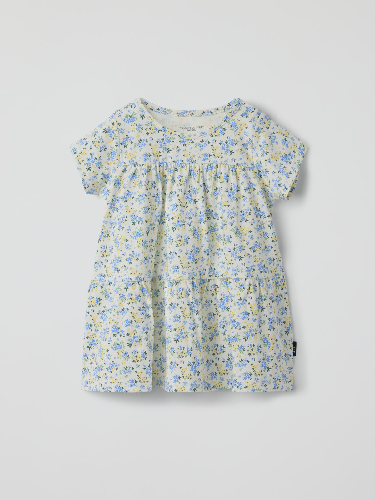 Lyhythihainen mekko pehmeästä luomupuuvillatrikoosta vauvalle – kesän suosikki arkeen ja juhlaan! Mekossa on ilmava malli ja rypytetty hameosa. Kiinnitys olkapäillä piiloneppareilla.