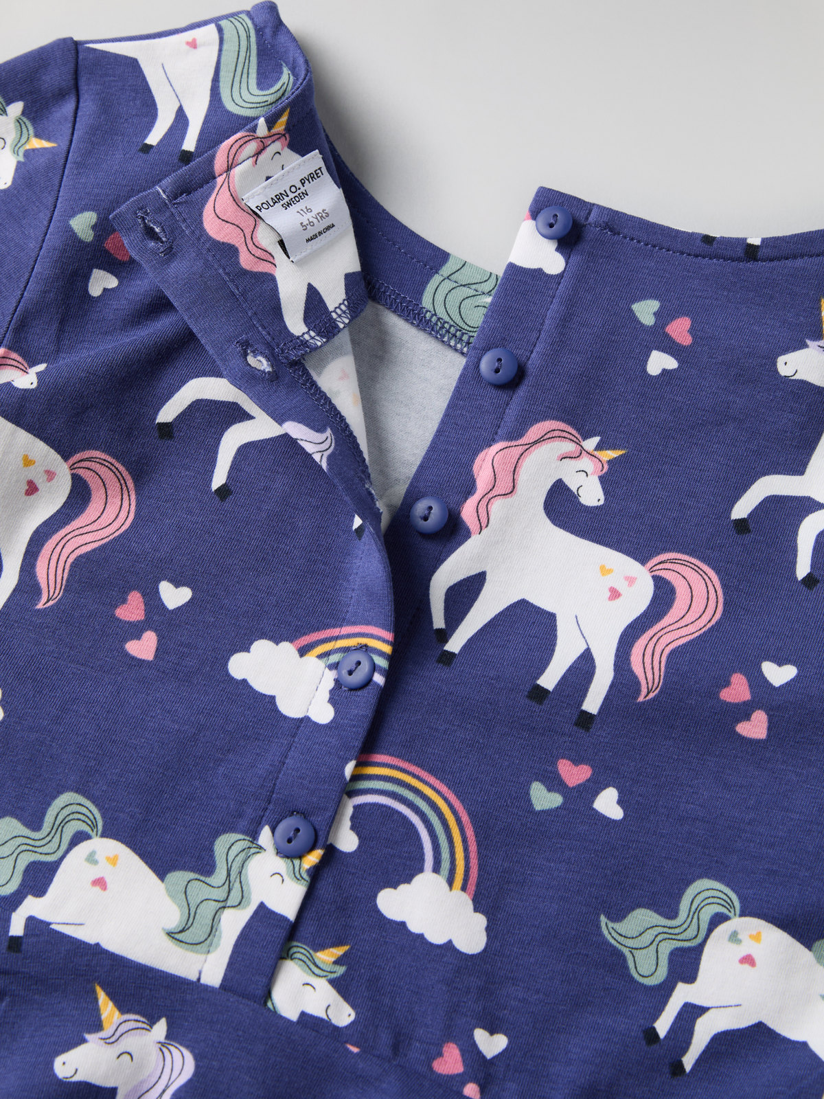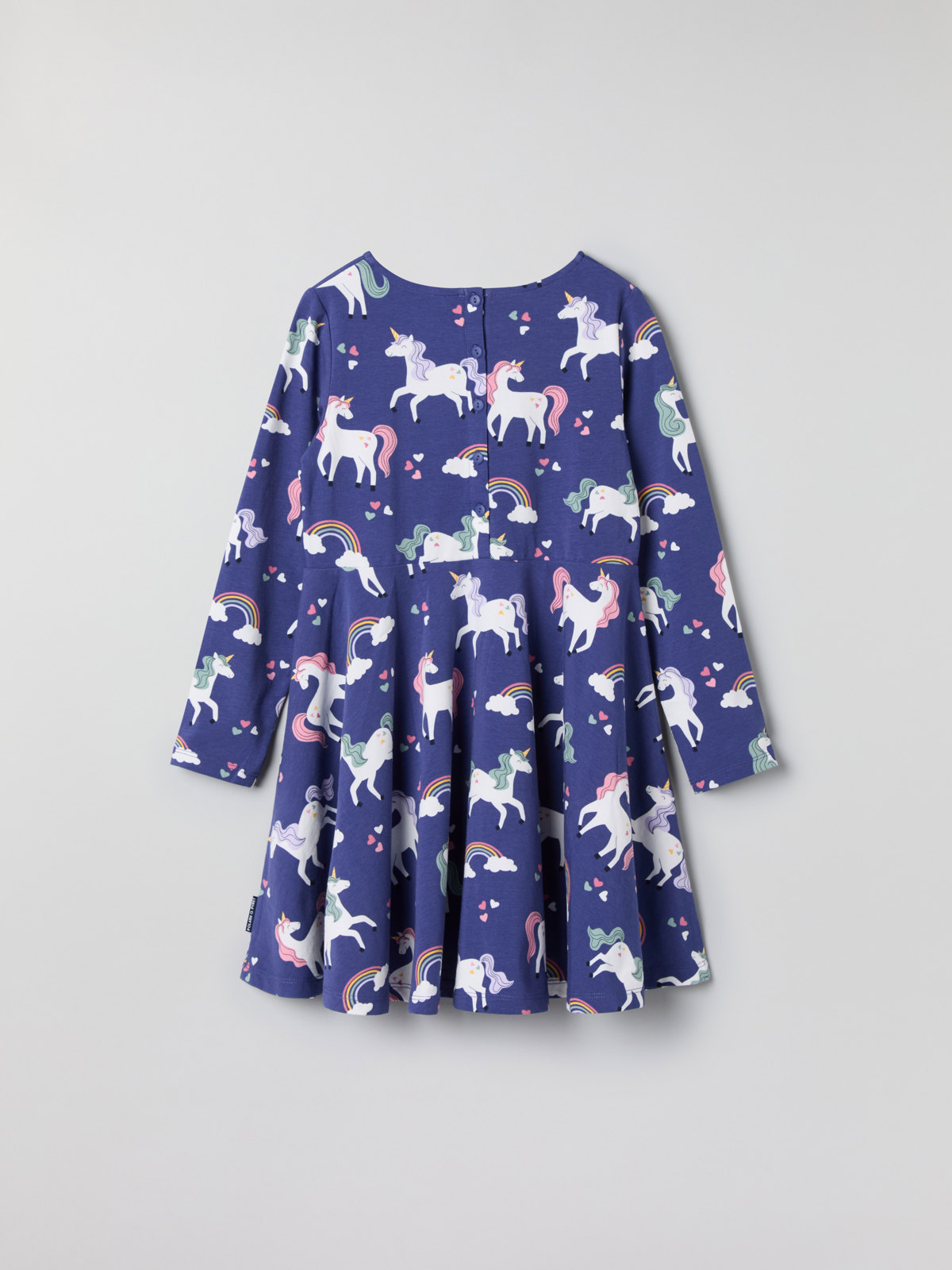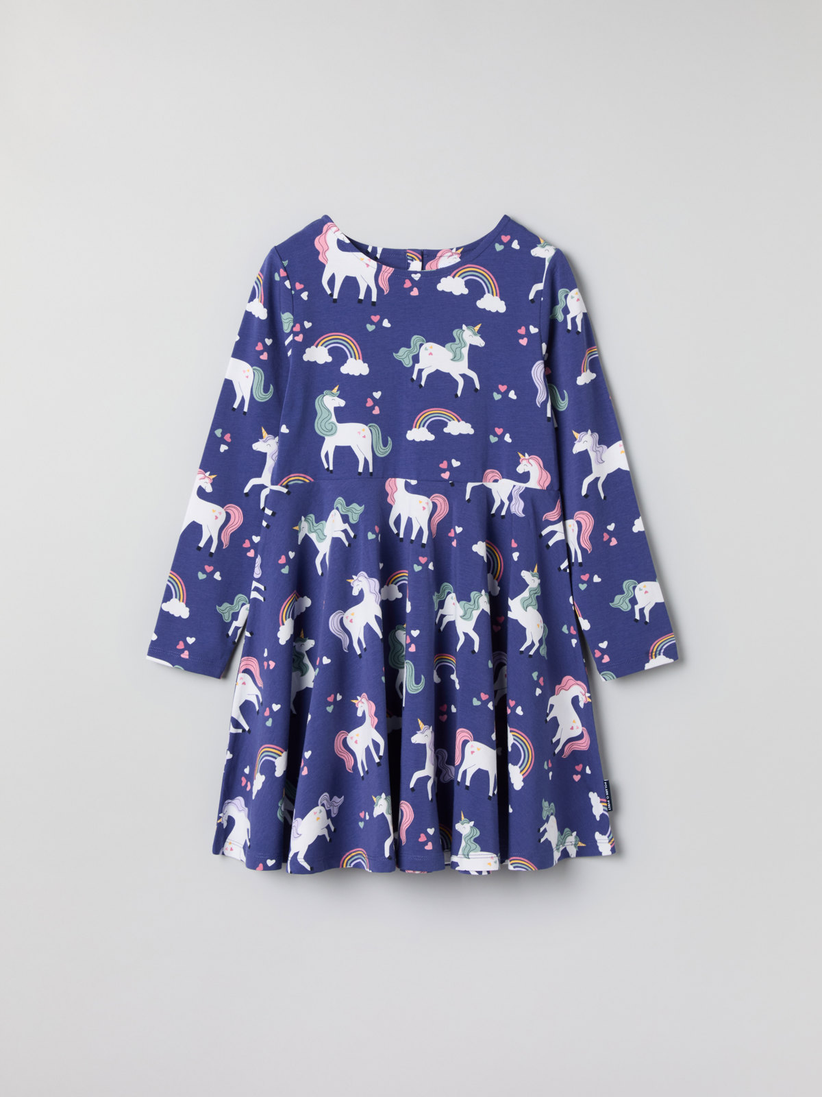 Tämä mekko on lapsen vaatekaapin suosikki! Valmistettu pehmeästä luomupuuvillatrikoosta. Erityisen leveä hameosa, joka näyttää hienolta pyöriessä.
