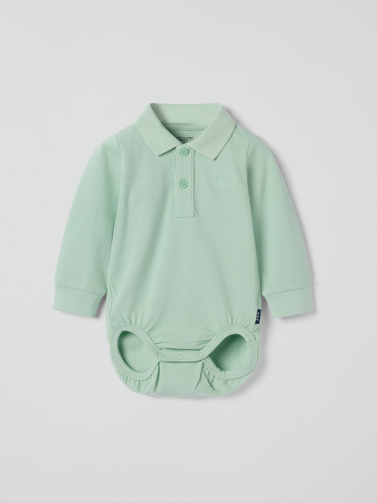 Pikeebody ekologisesta puuvillasta, jossa kaulus ja nappilista – tyylikäs perusvaate kaikkiin hetkiin! Hihansuissa on ribbineulos, joka takaa hyvän istuvuuden. Haarassa olevat nepparit helpottavat vaipanvaihtoa.
