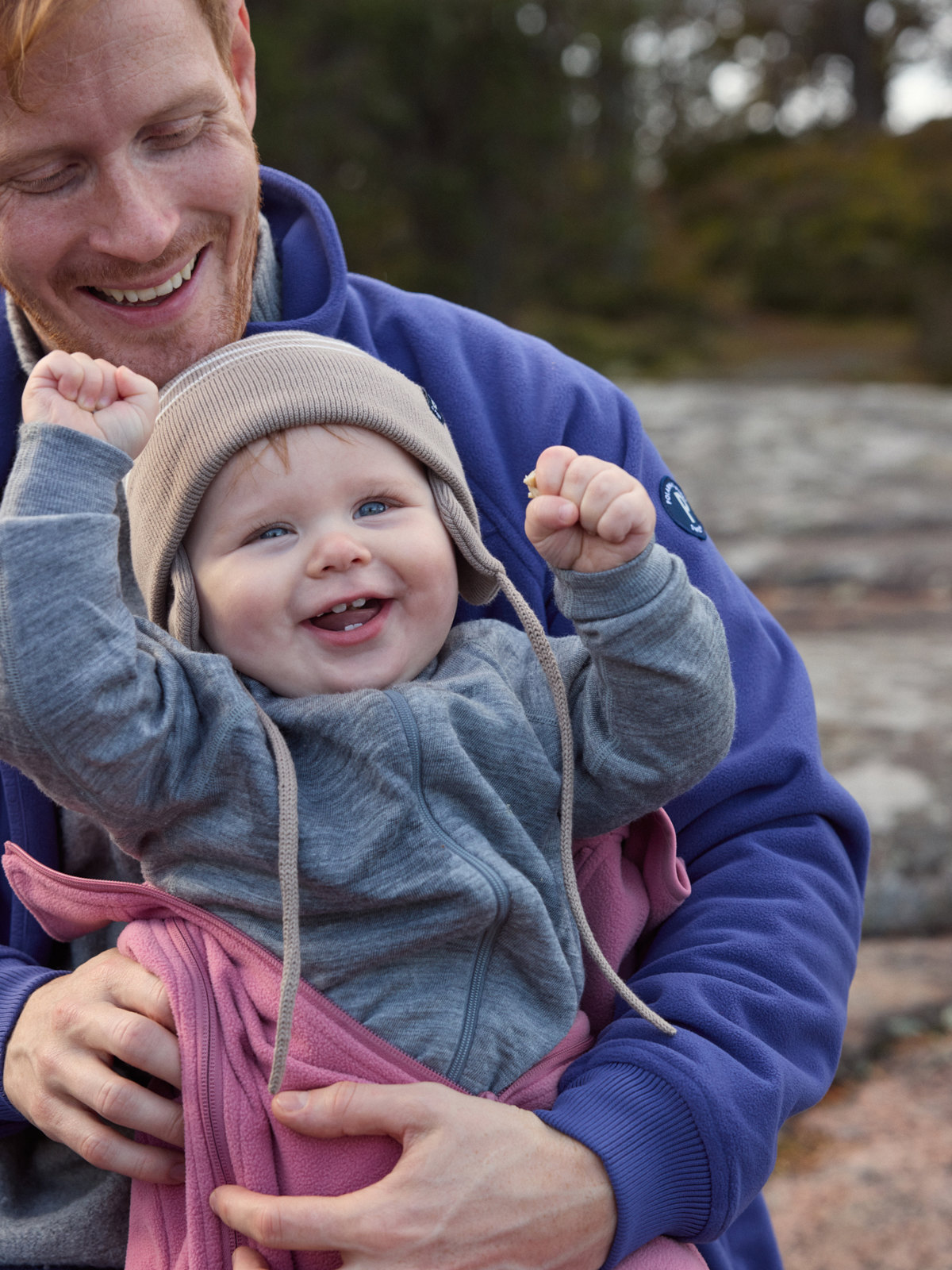 Lämmin ja paksu haalari pehmeää ja ihanaa villafroteeta. Haalari on valmistettu merinovillasta, joka imee tehokkaasti kosteutta ja pitää lapsen lämpimänä ja kuivana. Frotee säilyttää lämmittävän ilmakerroksen lähellä kehoa ja villa sekä pitää lämpöä että hengittää. Vaatteessa on edessä pidennetty vetoketju.