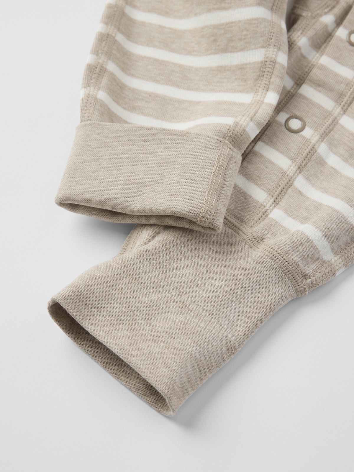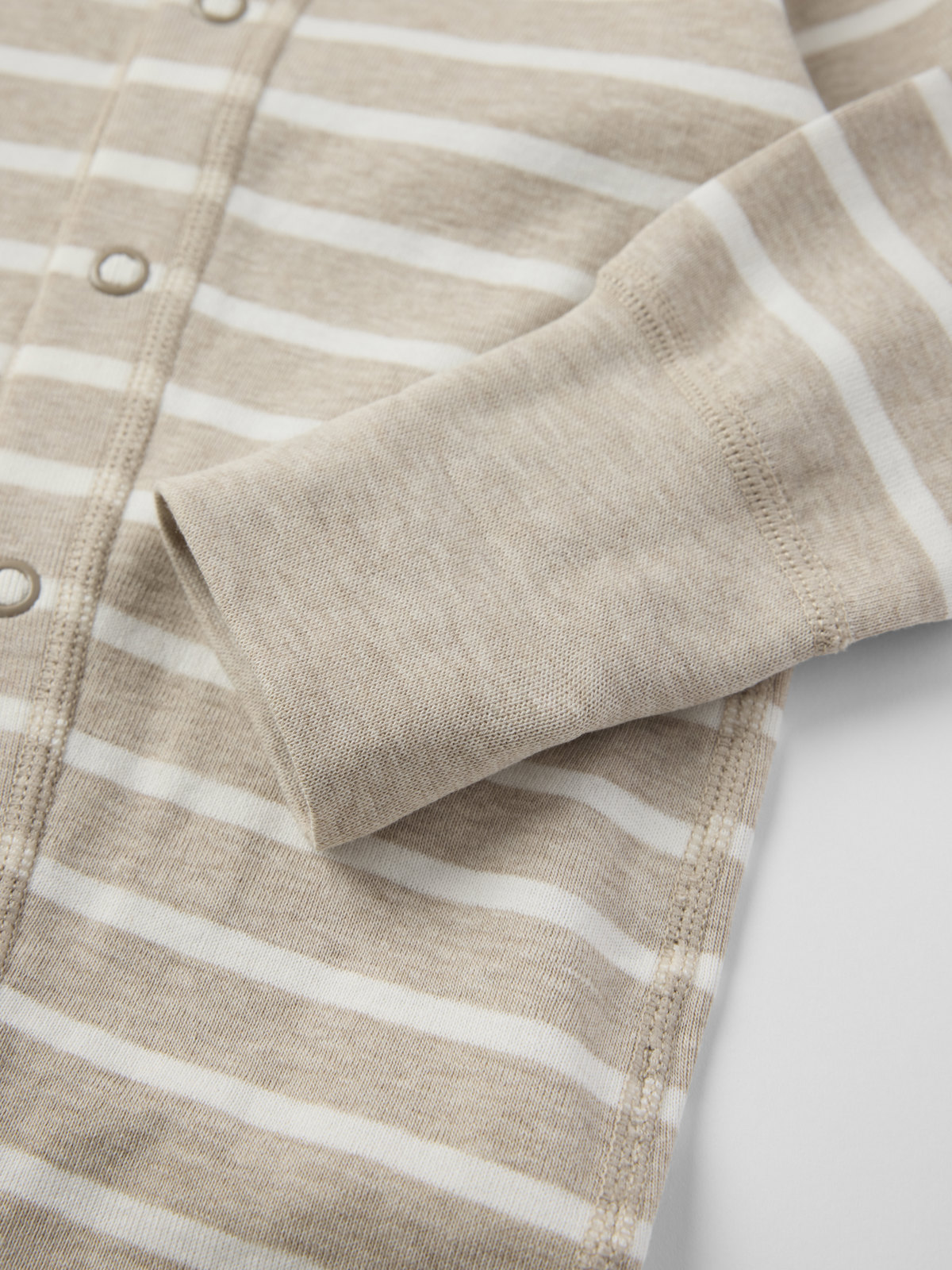 Klassinen raidallinen haalarimme pehmeää luomupuuvillaa – täydellinen sekä pyjamana että oloasuna! Haalarissa on erittäin pehmeät, litteät saumat, jotka eivät hankaa herkkää ihoa. Hihan- ja lahkeensuissa erityispitkät resorit, jotka voi taittaa auki lapsen kasvaessa. Pitkä nappilista pääntieltä lahkeensuulle helpottaa pukemista.