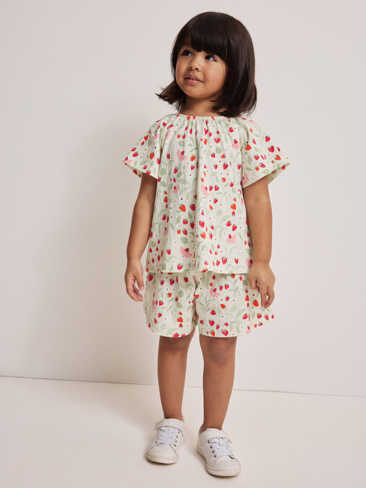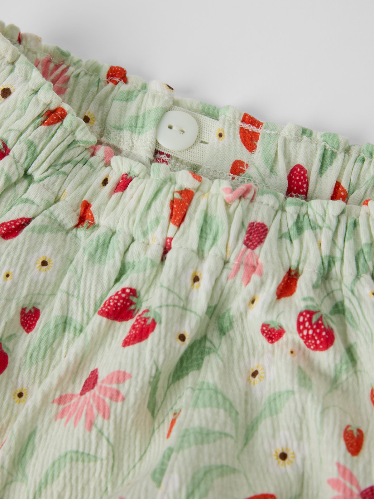 Kuviolliset shortsit ohuesta musliinijerseystä – täydelliset lämpimiin päiviin! Shortseissa on ilmava malli ja pehmeä, joustava vyötärö.