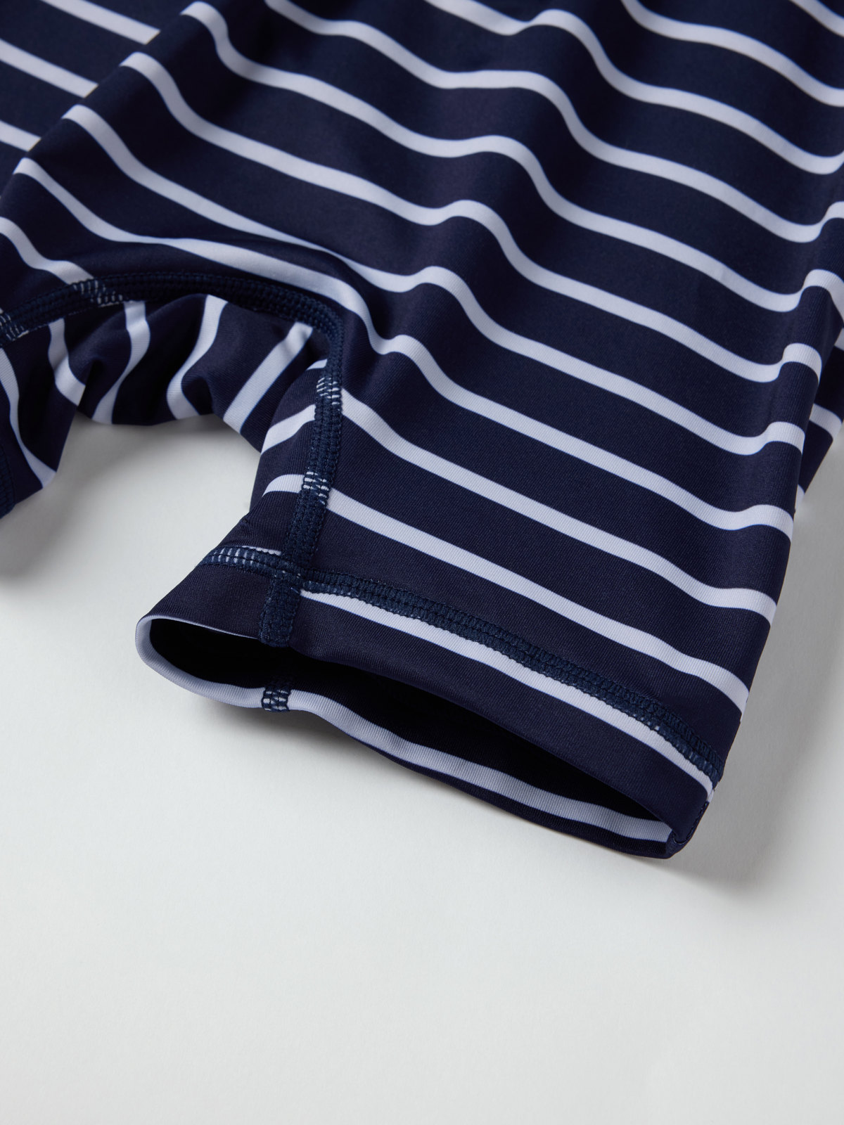 Klassinen raidallinen UV-uimahaalari, jossa on UPF 50. Valmistettu pehmeästä ja mukavasta kierrätetystä polyesteristä. Erittäin pehmeät saumat, jotka eivät hankaa. Etuvetoketju helpottaa pukemista ja siinä on ylhäällä suoja, jotta vetoketju ei hankaa leukaa ja poskia.