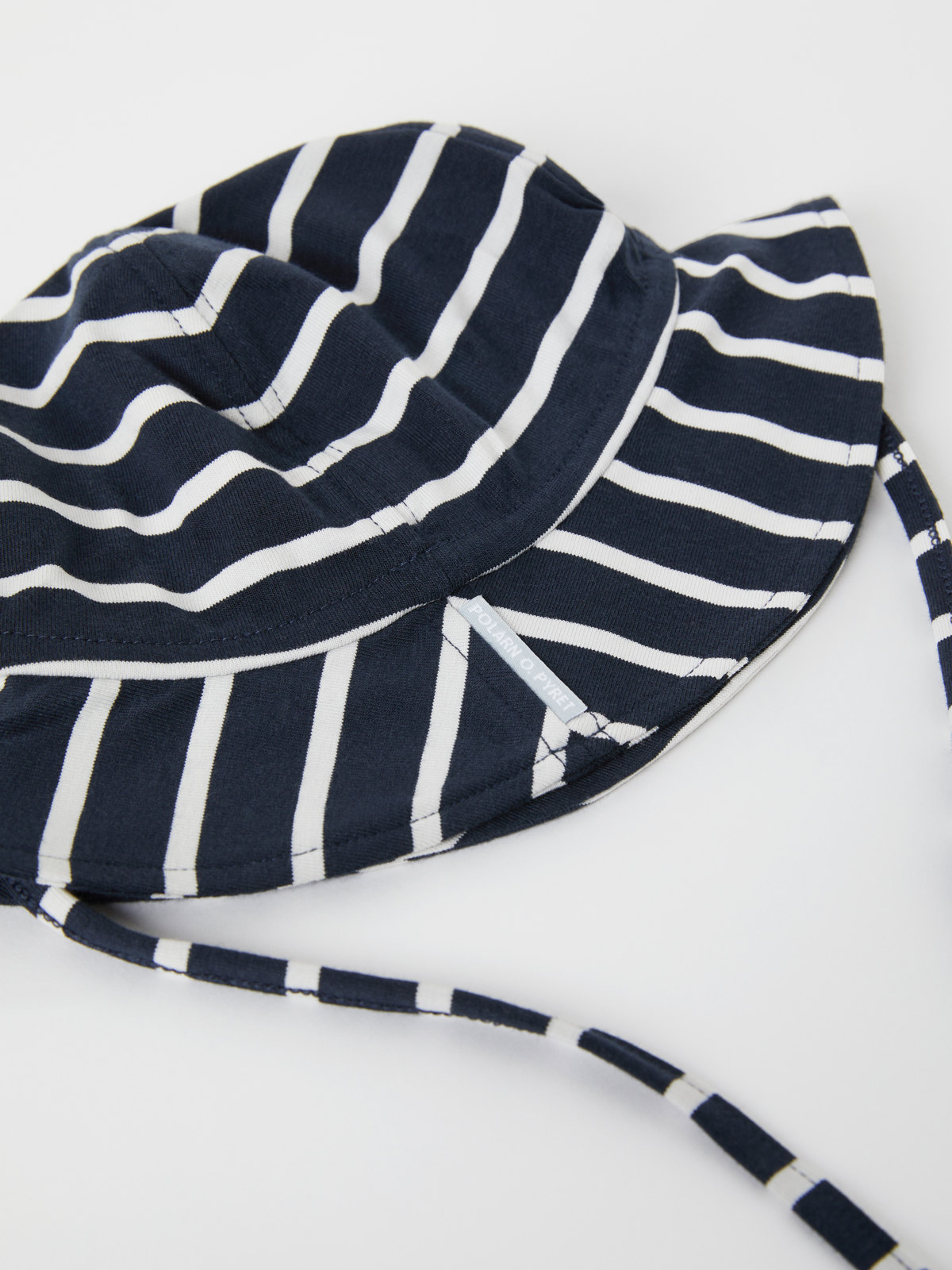 Suojaa vauvasi herkkää ihoa tällä raidallisella aurinkohatulla, joka on valmistettu pehmeästä luomupuuvillasta. Leuan alta solmittavat nauhat pitävät aurinkohatun paikoillaan.