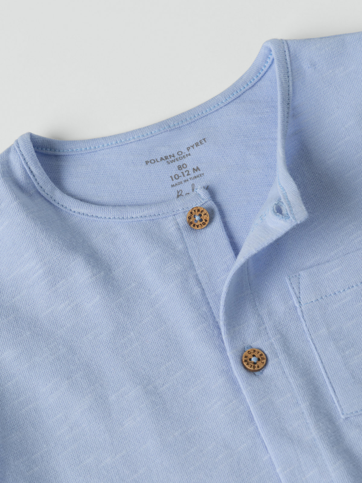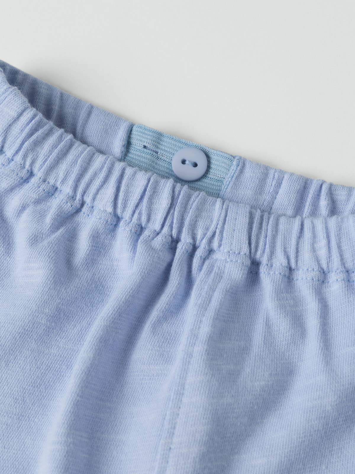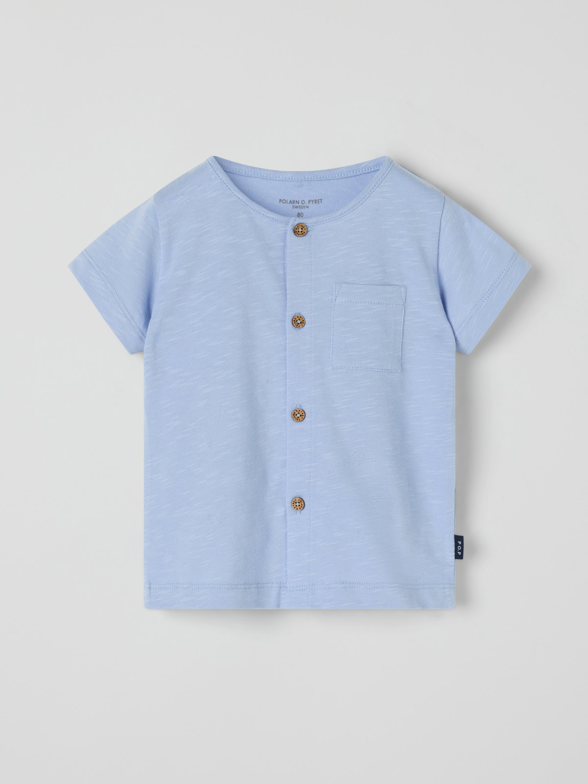 Setti, jossa ohut ja pehmeä slub-puuvillapaita ja shortsit vauvalle – täydelliset arjen kesävaatteet! Paidassa on nappilista edessä ja shortseissa mukava joustava vyötärö.