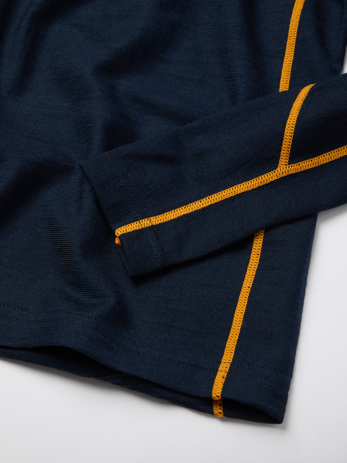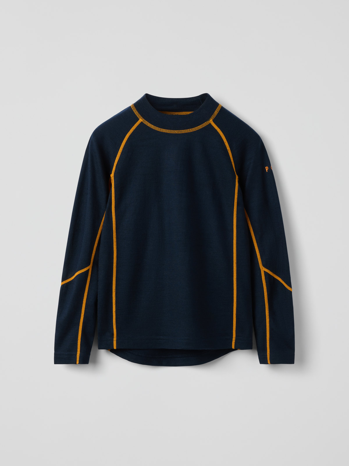 Paita pehmeästä ja lämmittävästä merinovillan ja polyesterin sekoitteesta, kontrastivärisillä saumoilla ja helmalla – täydellinen ensimmäiseksi kerrokseksi ihoa vasten. Merinovilla lämmittää myös kosteana ja auttaa säätelemään kehon lämpötilaa, ja polyesteri siirtää kosteuden pois iholta. Paita on ommeltu erityisen pehmeillä saumoilla ja sopii täydellisesti yhteen saman sarjan housujen kanssa alusasuksi kylminä talvipäivinä tai aktiivisilla retkillä.