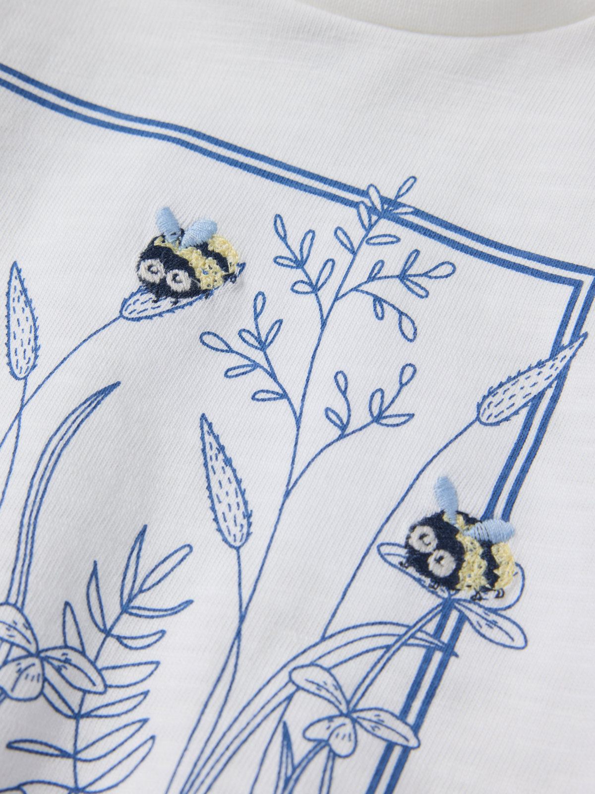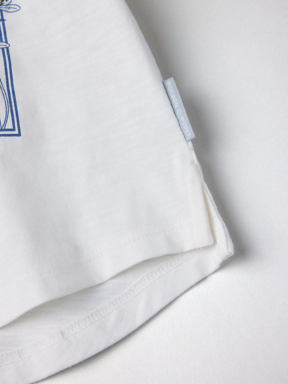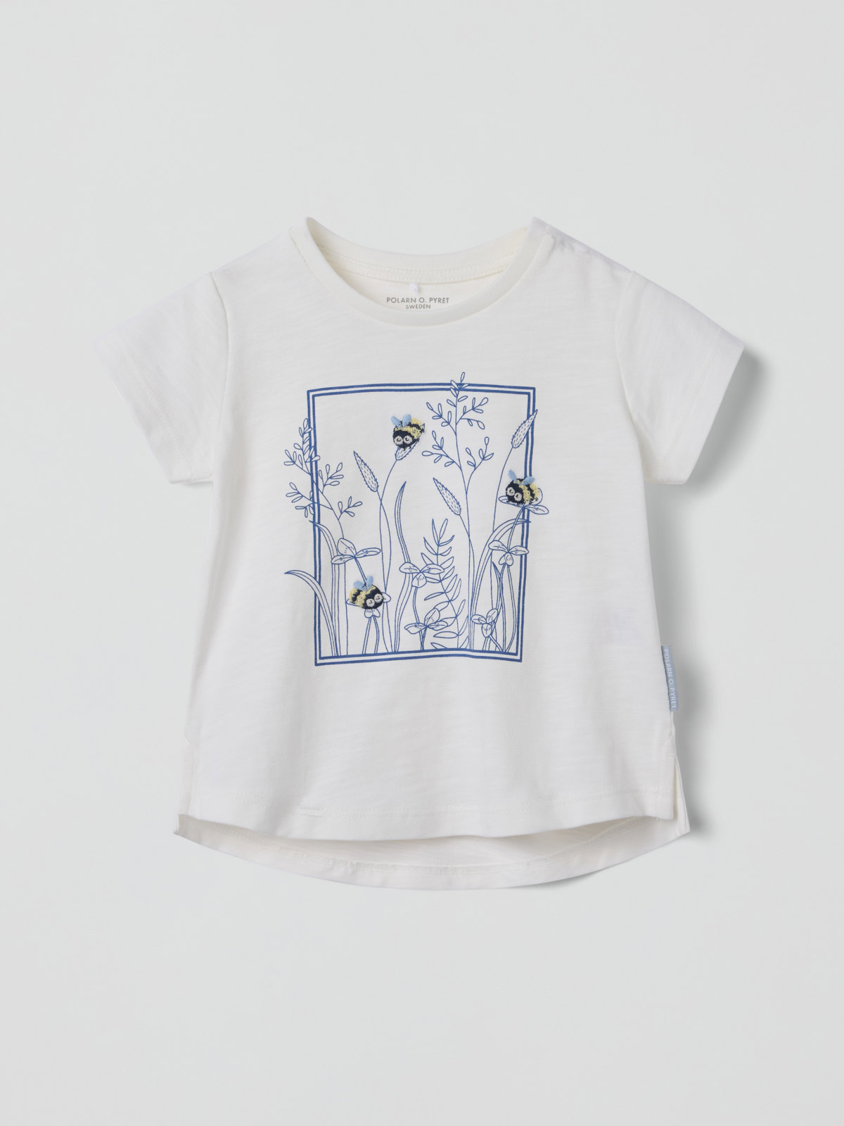 Lyhythihainen paita pehmeää ja mukavaa slub-materiaalia. Pyöreä helma. Paita on valmistettu 100 % luomupuuvillasta. Edessä kaunis brodeeraus.