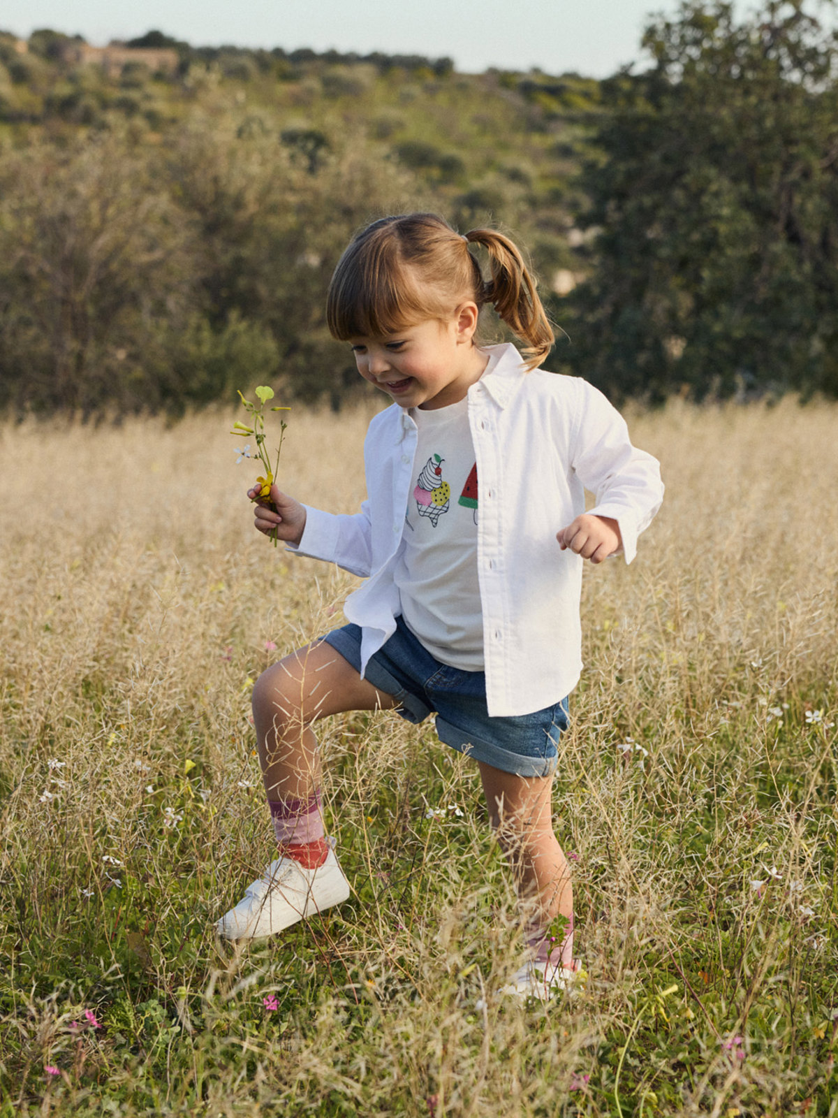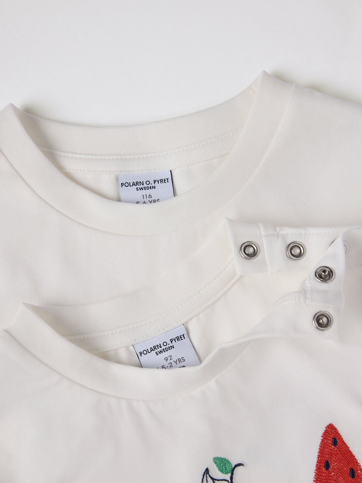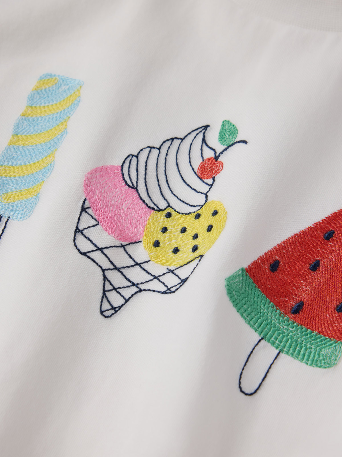 T-paita pehmeää luomupuuvillaa, jäätelöbrodeeraus – pitkäikäinen kesäsuosikki!