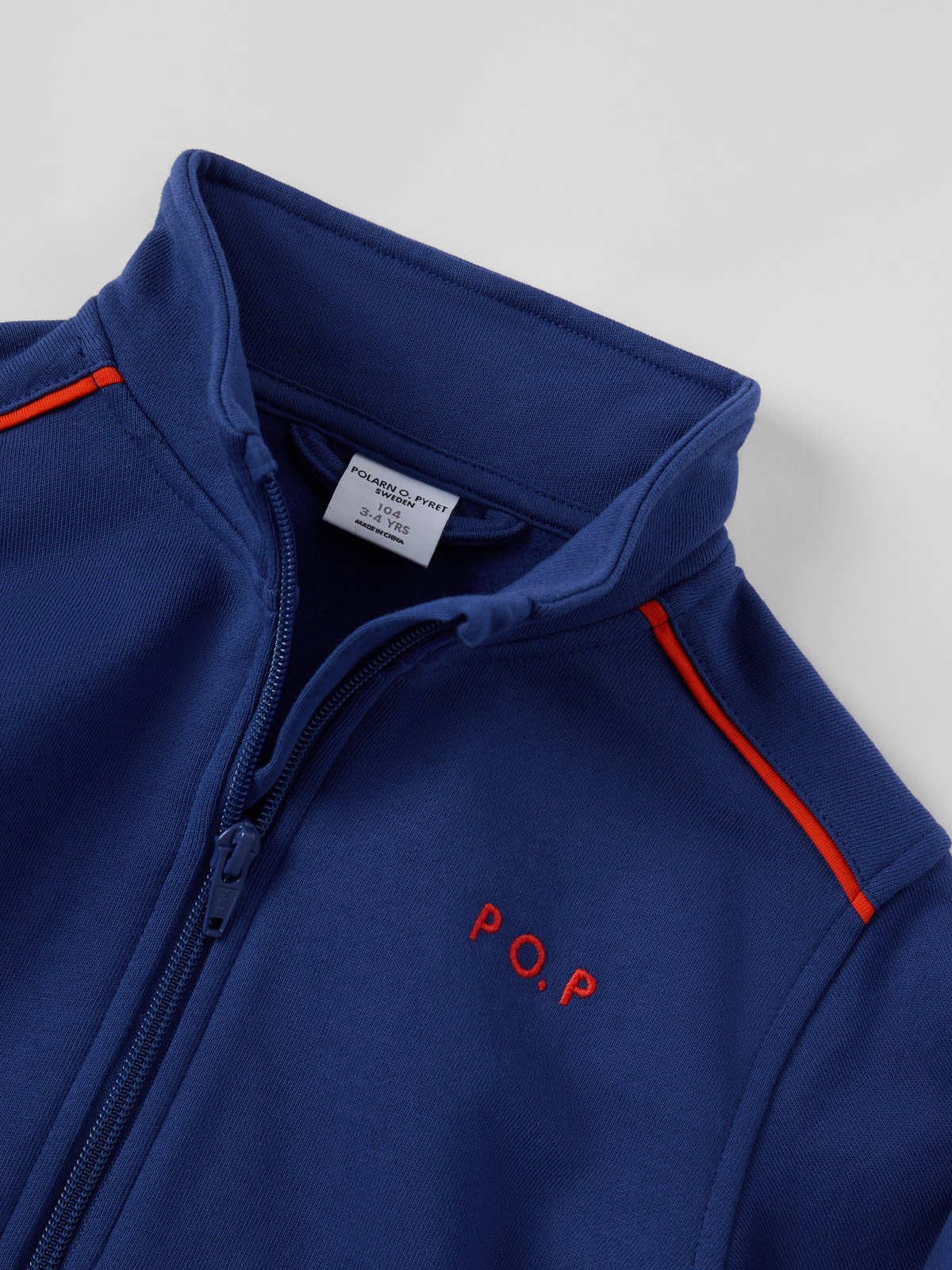 Takki pehmeää collegekangasta, valmistettu 100 % luomupuuvillasta ja varustettu vetoketjulla. Takissa on pitkä vetoketju, joka nousee hieman kaulaan, sekä resorit hihansuissa ja helmassa mukavan istuvuuden takaamiseksi. Edessä on myös kontrastivärinen brodeerattu logo.