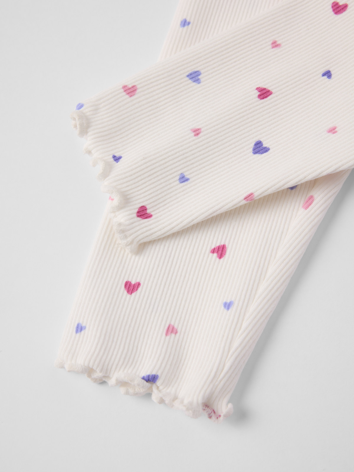 Vauvan ribbileggingsit pehmeää luomupuuvillaa. Joustava vyötärö, jota voi säätää reikäkuminauhalla. Rullapäärme lahkeensuissa.