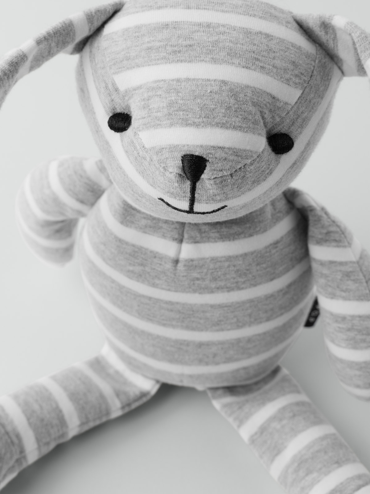 Pehmeä pehmopupu luomupuuvillaa klassisella raitakuosillamme –täydellinen ensimmäiseksi unikaveriksi!