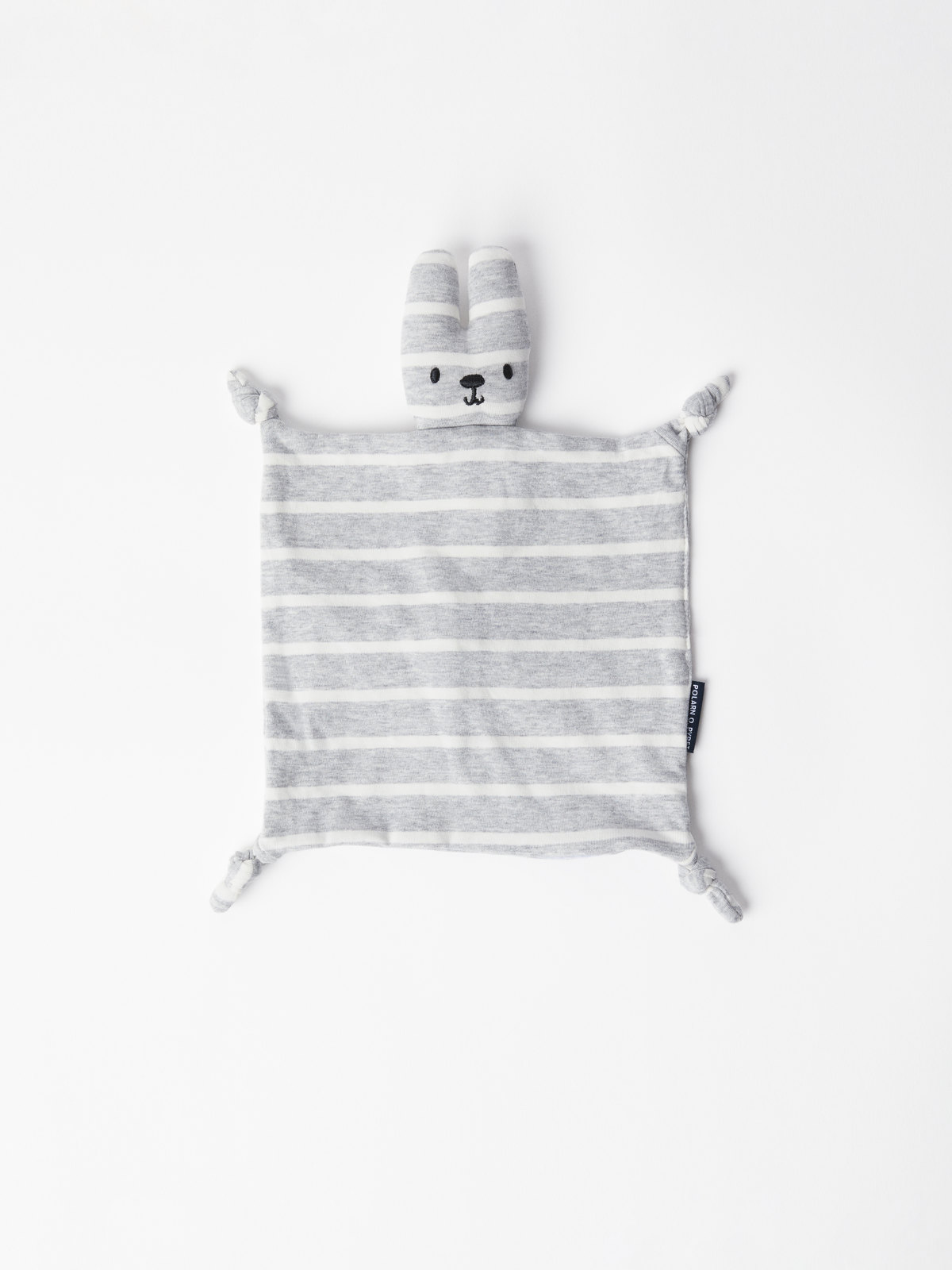 Tämä ihanan pehmeä uniriepu, jossa on suloinen pupu, on lapsesi paras ystävä. Unirievussa on klassinen raitakuosimme ja se on valmistettu 100 % luomupuuvillasta. Pupun täyte on 100 % kierrätettyä polyesteriä.