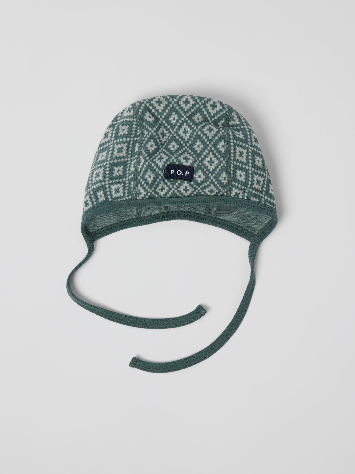 Jacquard-kuvioitu kypärämyssy ohuesta ja pehmeästä merinovillasta - suunniteltu kaikkein pienimmille. Merinovilla pitää lämpimänä myös kosteana ja auttaa säätelemään kehon lämpötilaa – ja on uskomattoman pehmeä ihoa vasten. Leuan alle sidottavat nauhat pitävät kypärämyssyn paikoillaan.