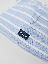 Vauvan raidallinen pipo 100 % luomupuuvillatrikoota. Pipossa on koristeena korvat. Taitoksen avulla pipon kokoa voi säätää vauvan pään koon mukaan.
