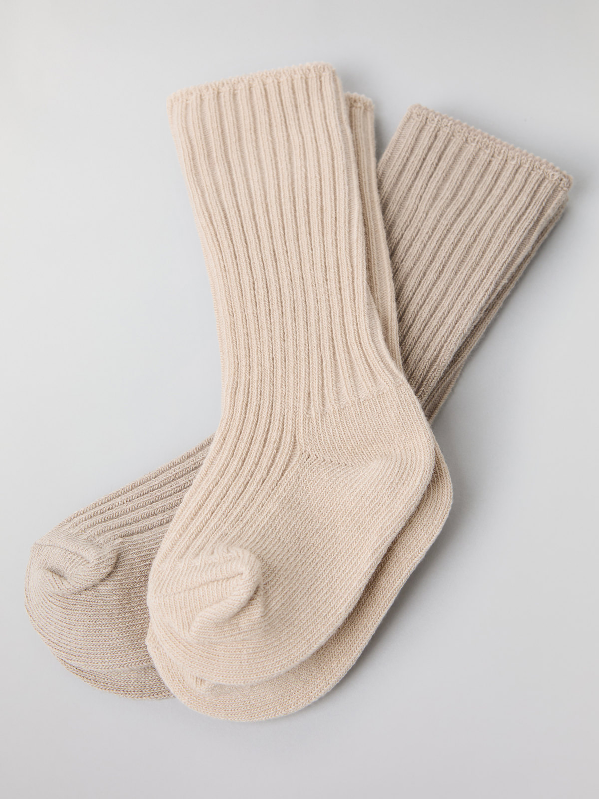 Täydennä sukkalaatikkoa kahden parin pakkauksella vauvan yksivärisiä sukkia. Pehmeää luomupuuvillaa. Sukissa on pehmeä, taitettava ja hankaamaton resori.