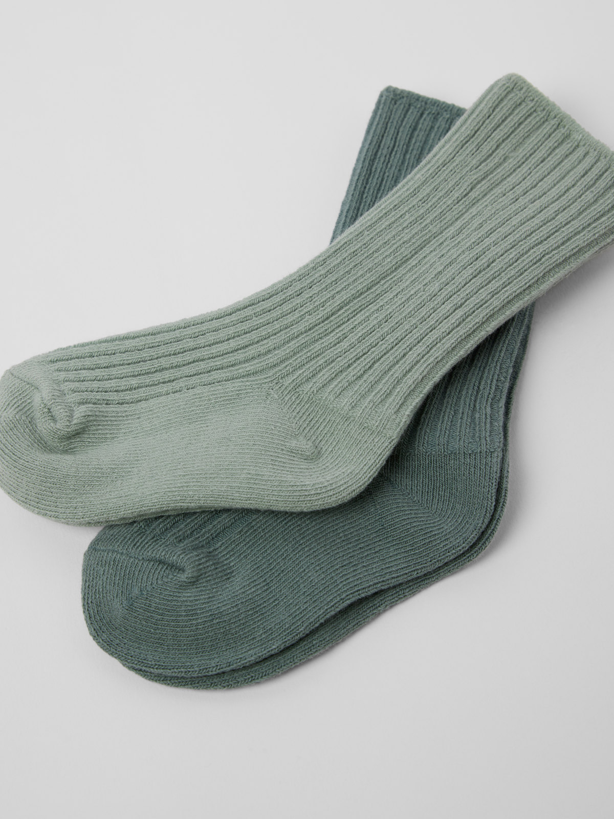 Täydennä sukkalaatikkoa kahden parin pakkauksella vauvan yksivärisiä sukkia. Pehmeää luomupuuvillaa. Sukissa on pehmeä, taitettava ja hankaamaton resori.