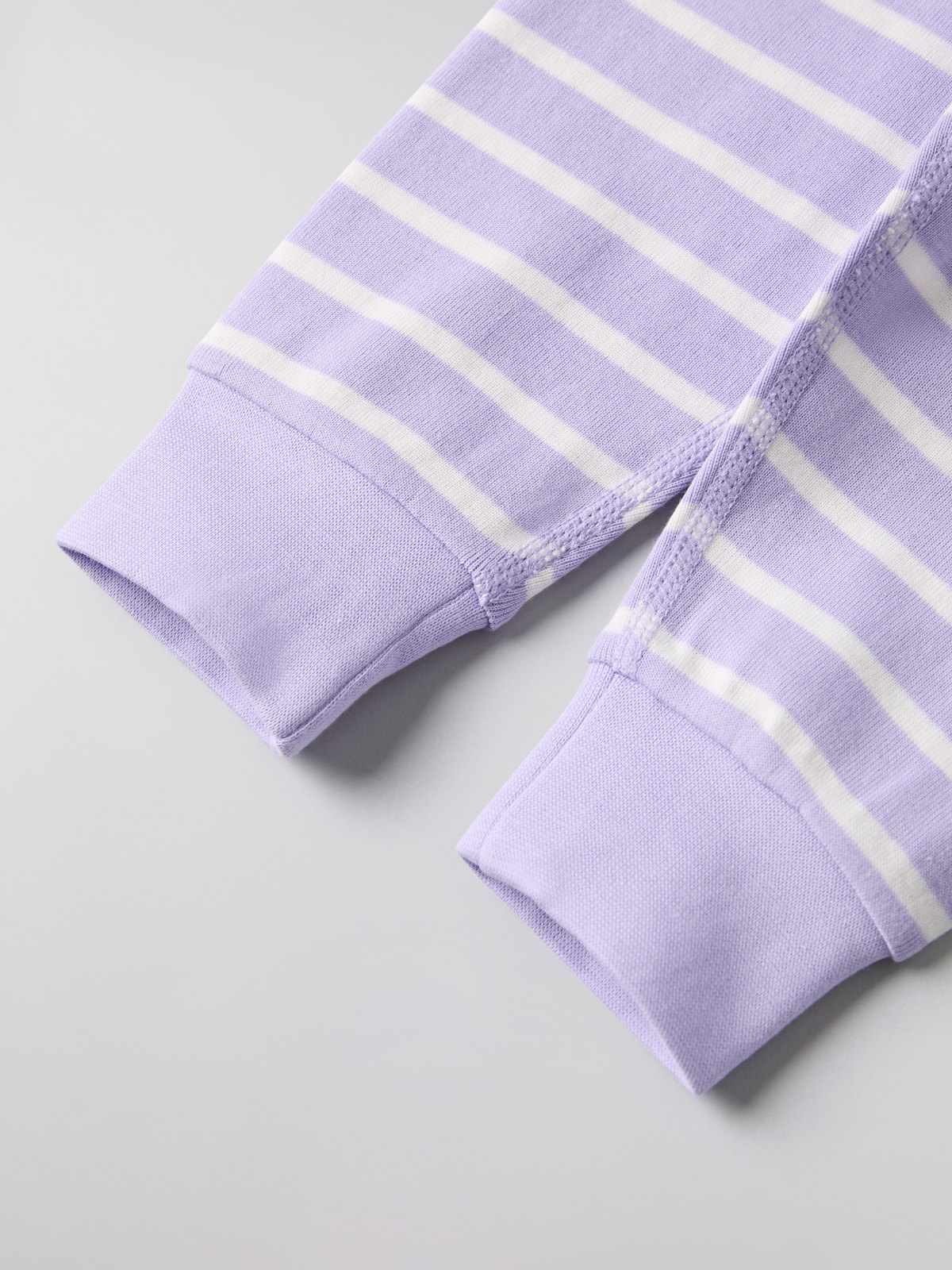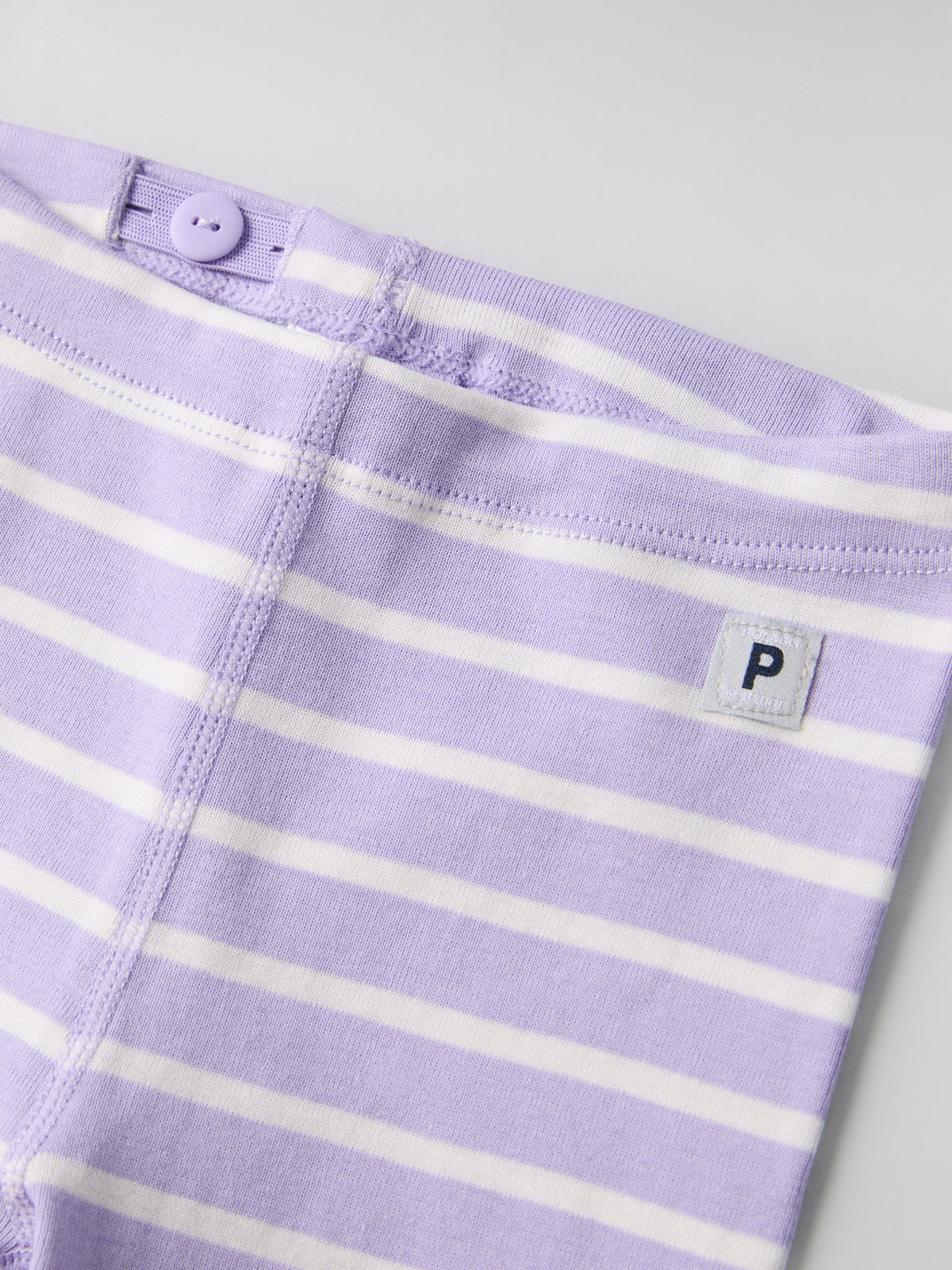 Klassiset raidalliset housut pehmeää luomupuuvillatrikoota. Täydellinen perusvaate, joka sopii sekä kotiin että päiväkotiin!