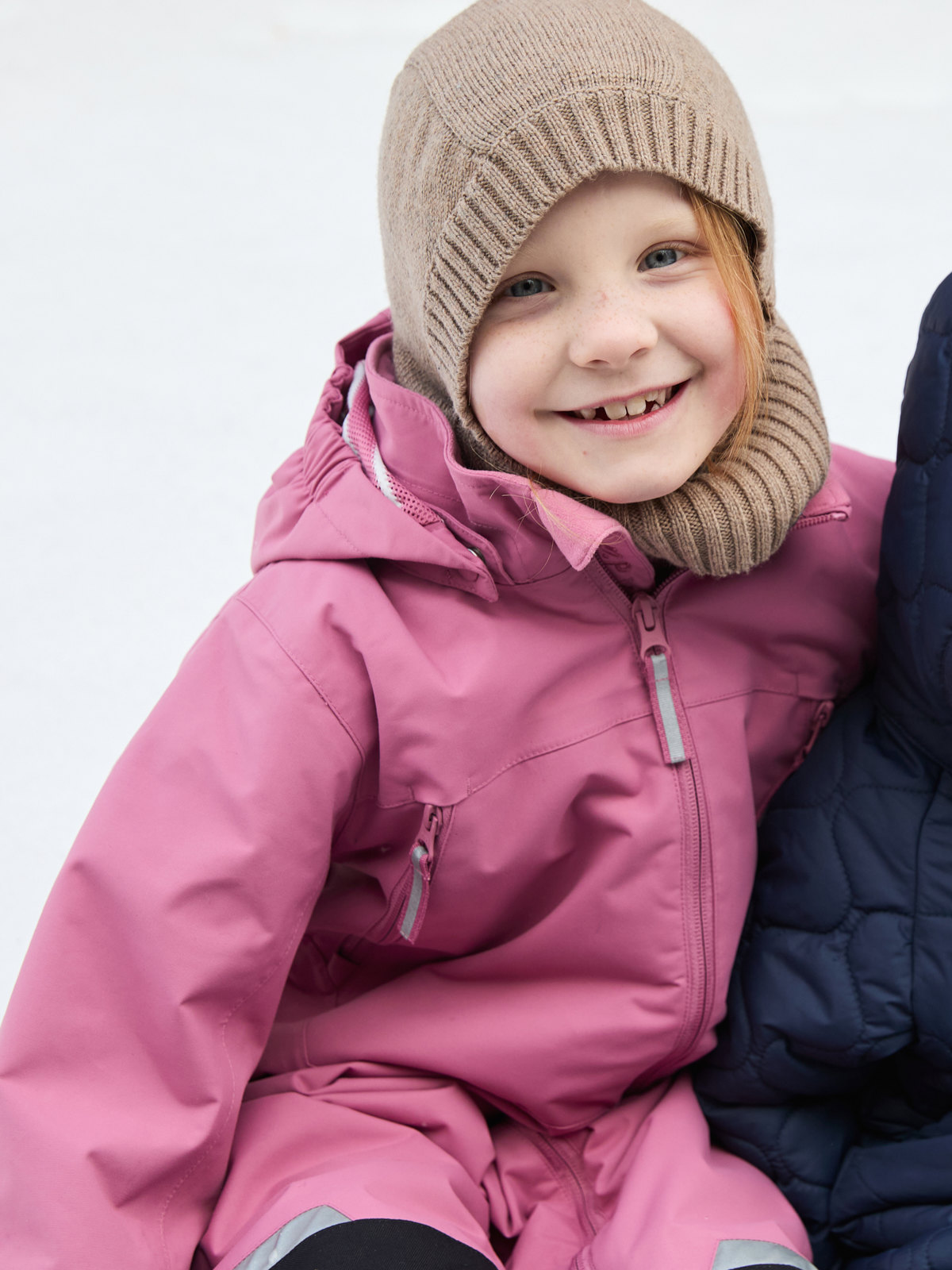 Yksivärinen kypärämyssy lämmintä merinovillaa- ja puuvillasekoitetta. Sopii talviulkoiluun tai laskettelumäkeen! Ribbiresori kasvojen ja kaulan ympärillä varmistaa mukavan istuvuuden.
