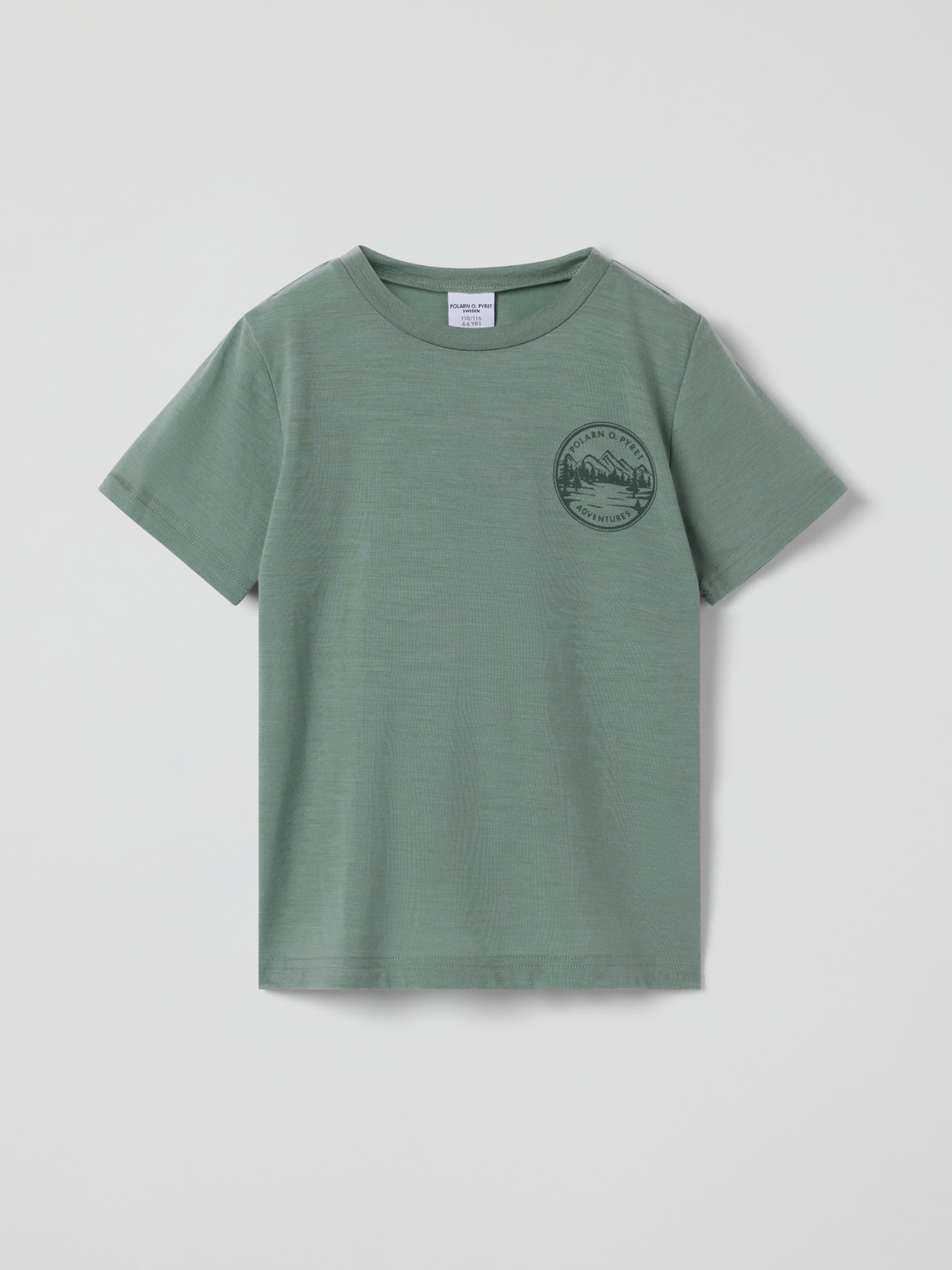 T-paita pehmeästä ja miellyttävästä villan ja kierrätetyn polyesterin sekoitteesta aikuisille – täydellinen seikkailuihin! Villa säätelee kehon lämpötilaa ja lämmittää myös kosteana, polyesteri siirtää kosteuden pois iholta. villa kierrätetty polyesteri aikuinen