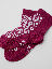 Jacquard-kuvioiset sukat ohutta merinovillaa, joka lämmittää hyvin ja tuntuu pehmeältä pienissä jaloissa. Koko on merkitty varren sisäpuolelle. Tilaa on myös lapsen nimelle. Helppo pitää järjestyksessä!