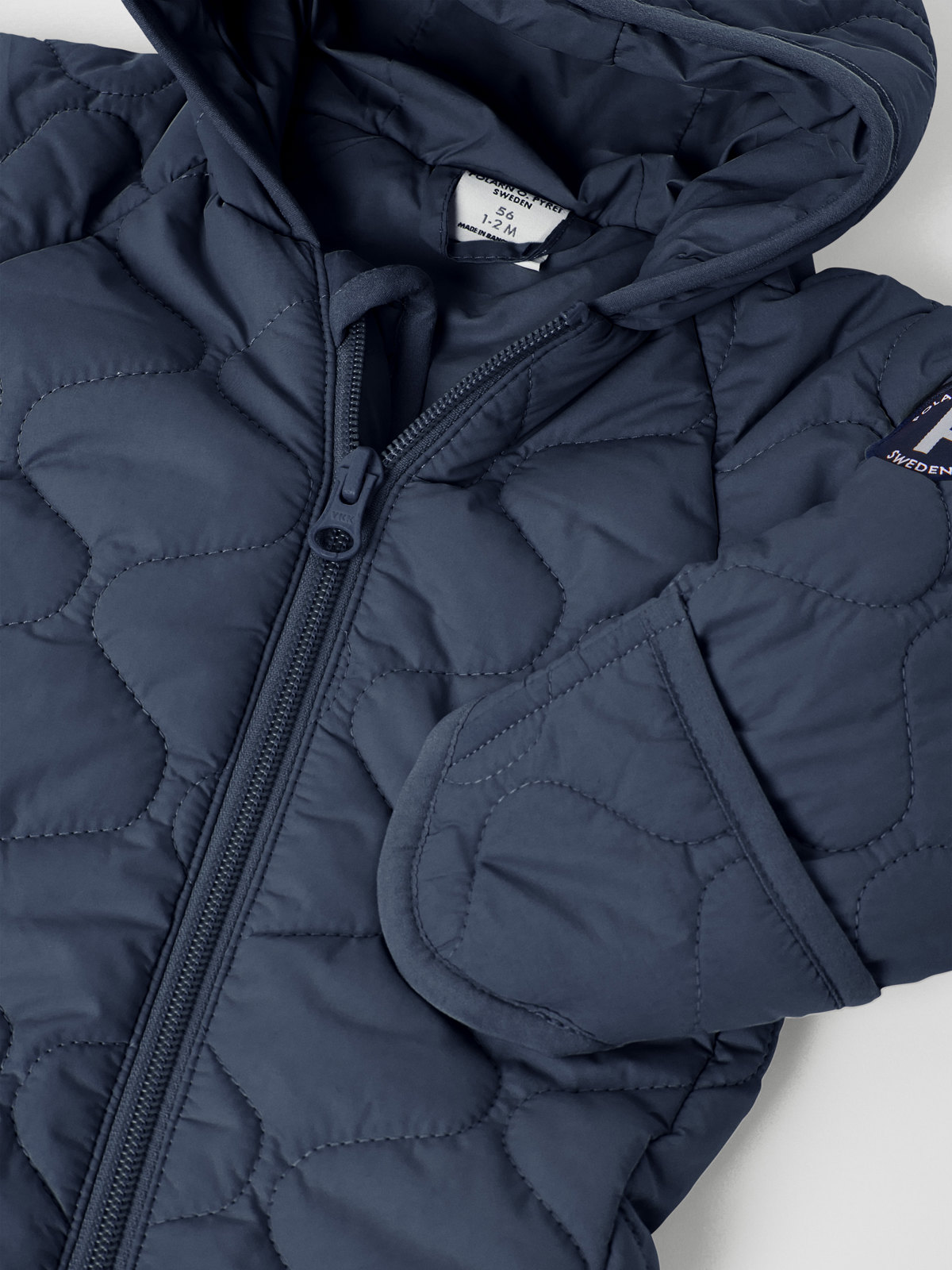 Todella pehmeä ja mukava haalari tuulenpitävää ja vettähylkivää materiaalia – mukava sekä vaunuissa että sylissä. Haalarissa on lämmin toppaus ja kiinteä huppu, joka suojaa mukavasti tuulelta ja kylmyydeltä.